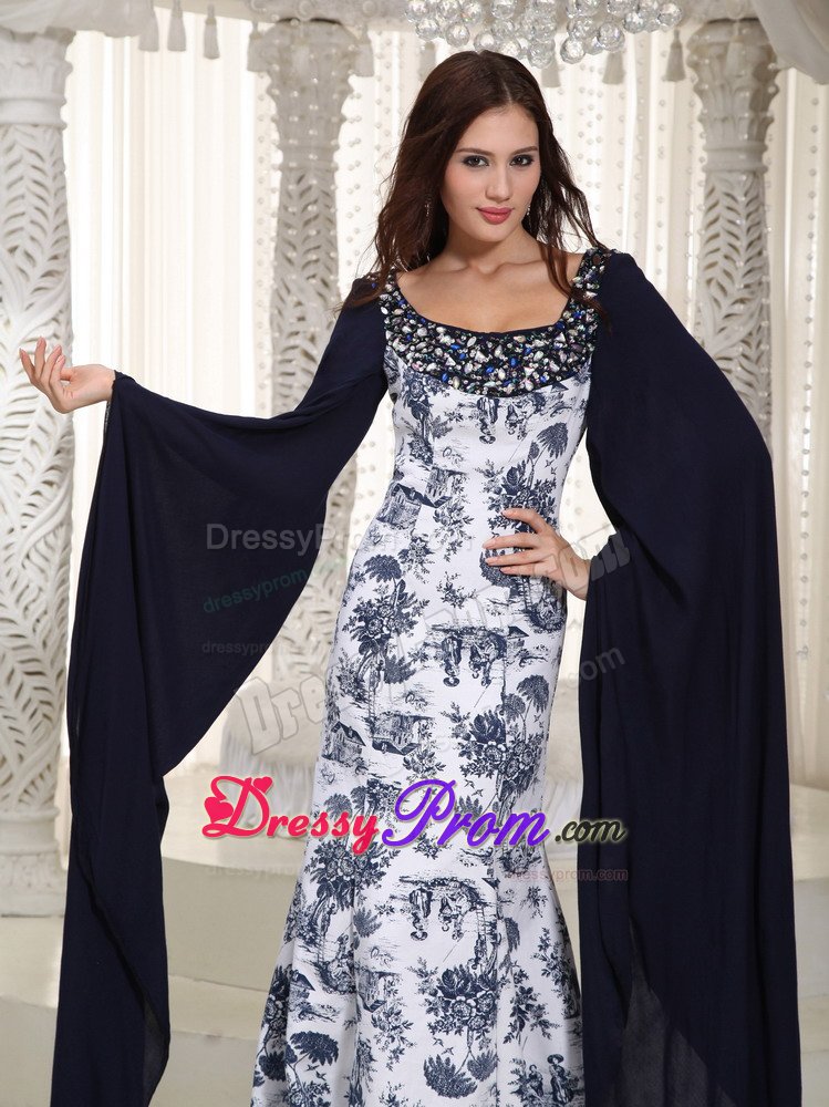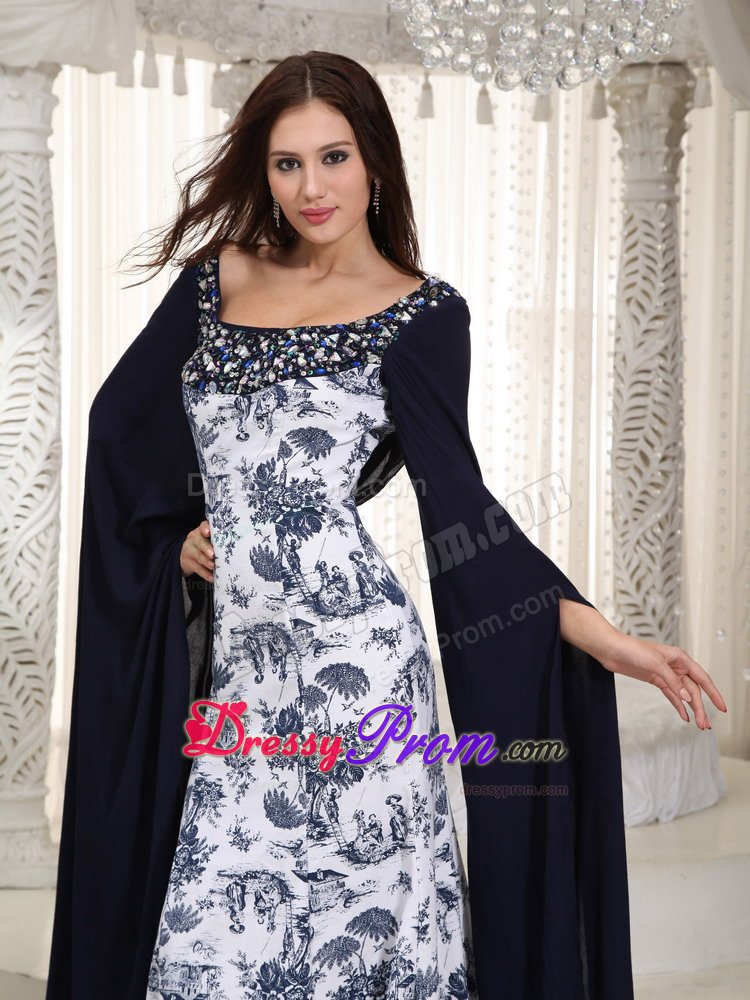 Seize the day at your 2013 prom or formal with a sensational long floral print dress from Fashionos. Bold beautiful colors, a modest straight neckline, and embellished bustline give this long dress a head turning style that will have all eyes on you at prom. What's more, airy long sleeves and the circular trailing add elegance and gorgeousness to this prom gown dress.
