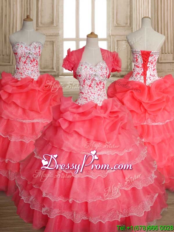 The price is just for the dress. Any other accessories in the picture, just like veil, jacket, etc. are not included, and if you need one, please feel free to contact us. Tips:We offer regular petticoats and the the big petticoats. If you want to the dress to be as puffy as the one in the picture, we suggest you to get a big one, which is extra $40. If you are in need of ballons, table cloth, ect, you may contact our customer service.