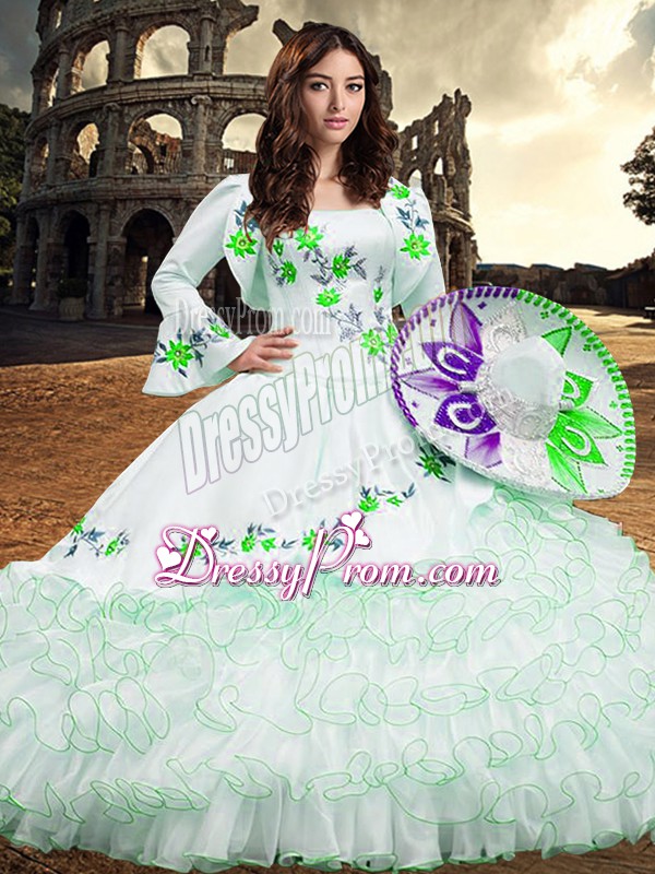 Embellishment: embroidery,ruffled layers