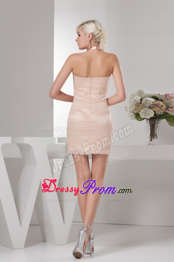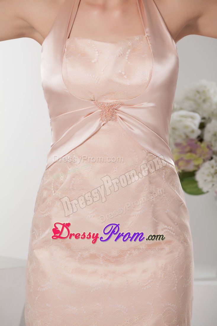 This charming prom dress features its halter top neckline, sheath silhouette. It ? made of satin with lace covered. Exquisitely decorated with appliques and Pleats. Back hidden zipper closure. This Dres is perfect for prom, caocktail and nightclub.