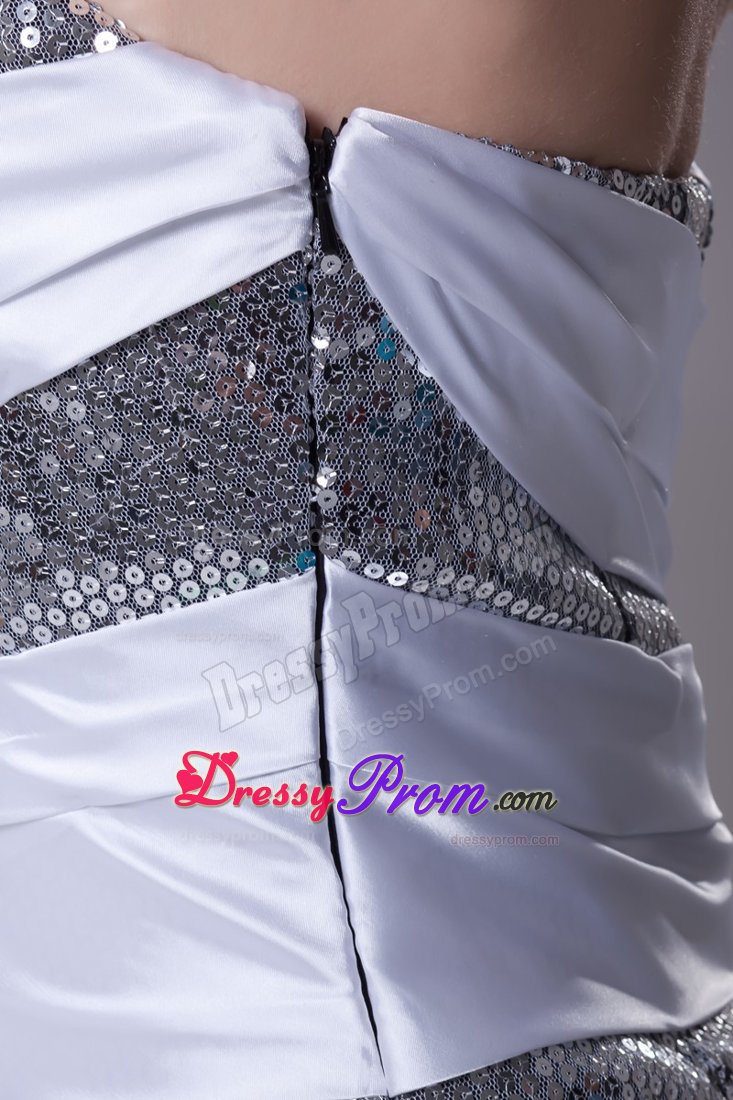 Classic and elegant prom dress is modern and stylish. This short sequins dress is made of sequined material and silk-like satin. The outside of this dress is silver while black inside. Side zipper closure hold the dress in place. This sequins dress is the best choice you prom.