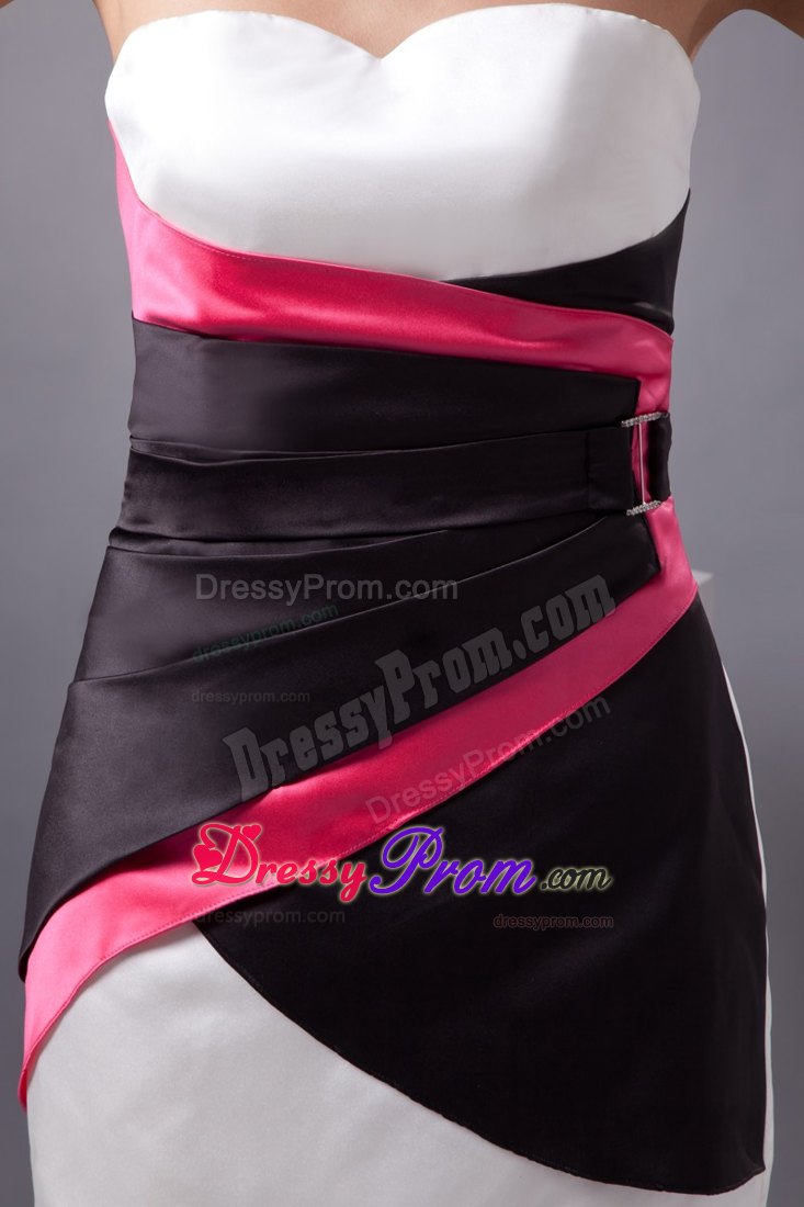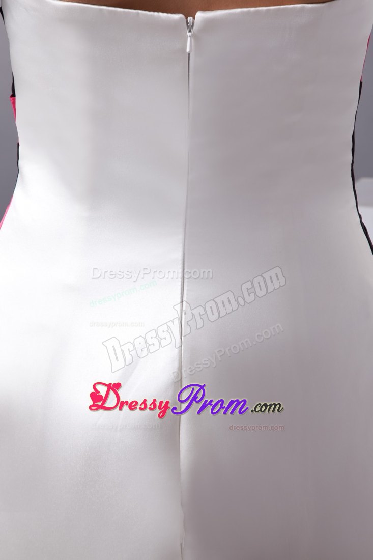 This white, black and red prom is so beautiful. The strapless prom gown features sweetheart bodice and a natural skirt. The bust area part is accented with ruches to achieve a stunning effect. The ruched details and the zipper up back emphasize your slim curves. The dress is perfect for any occasion.