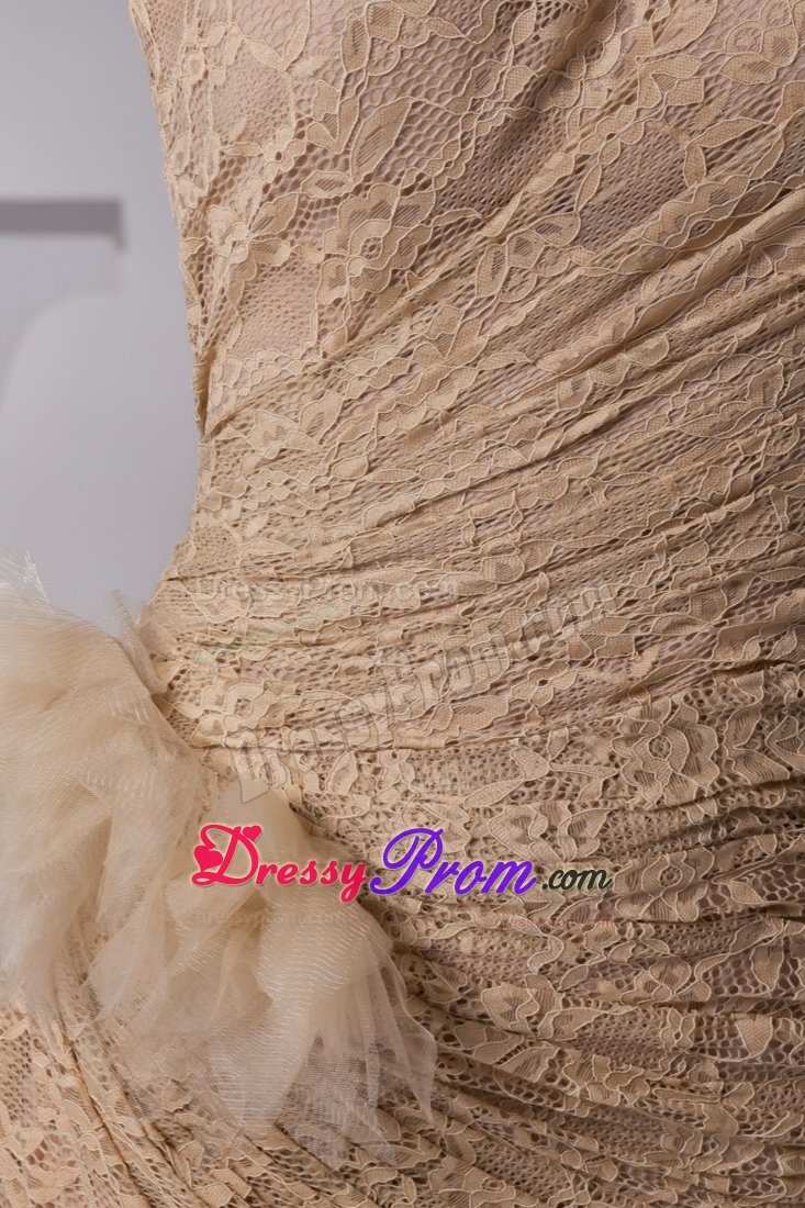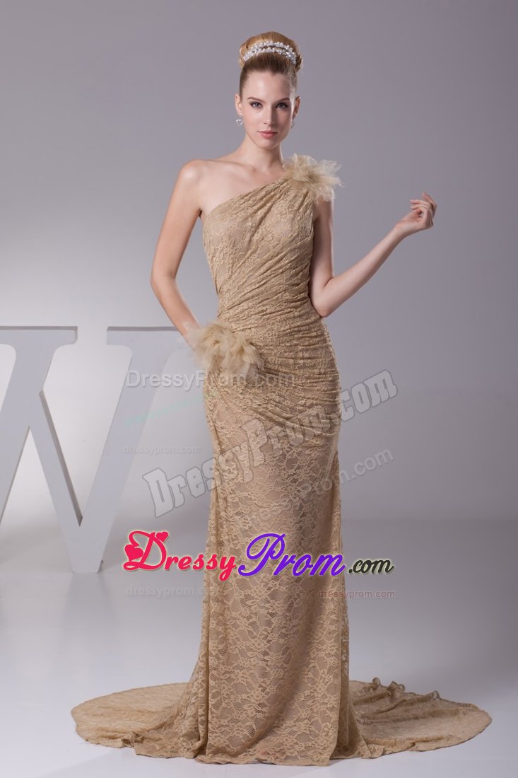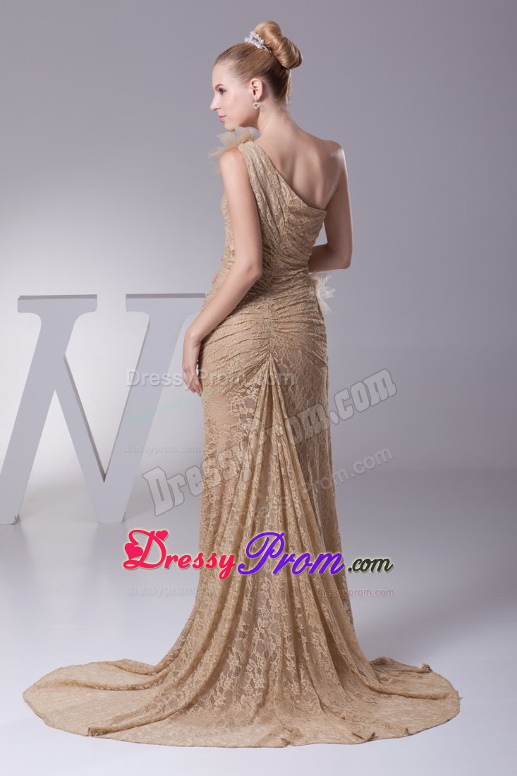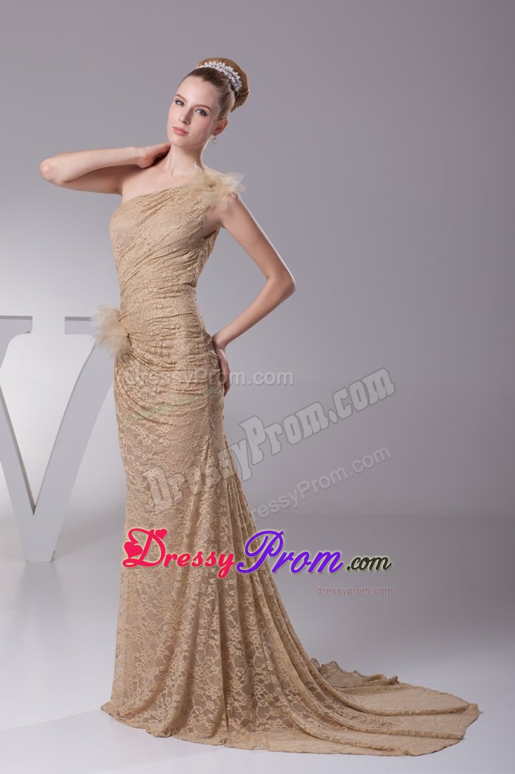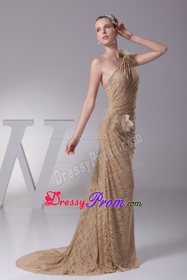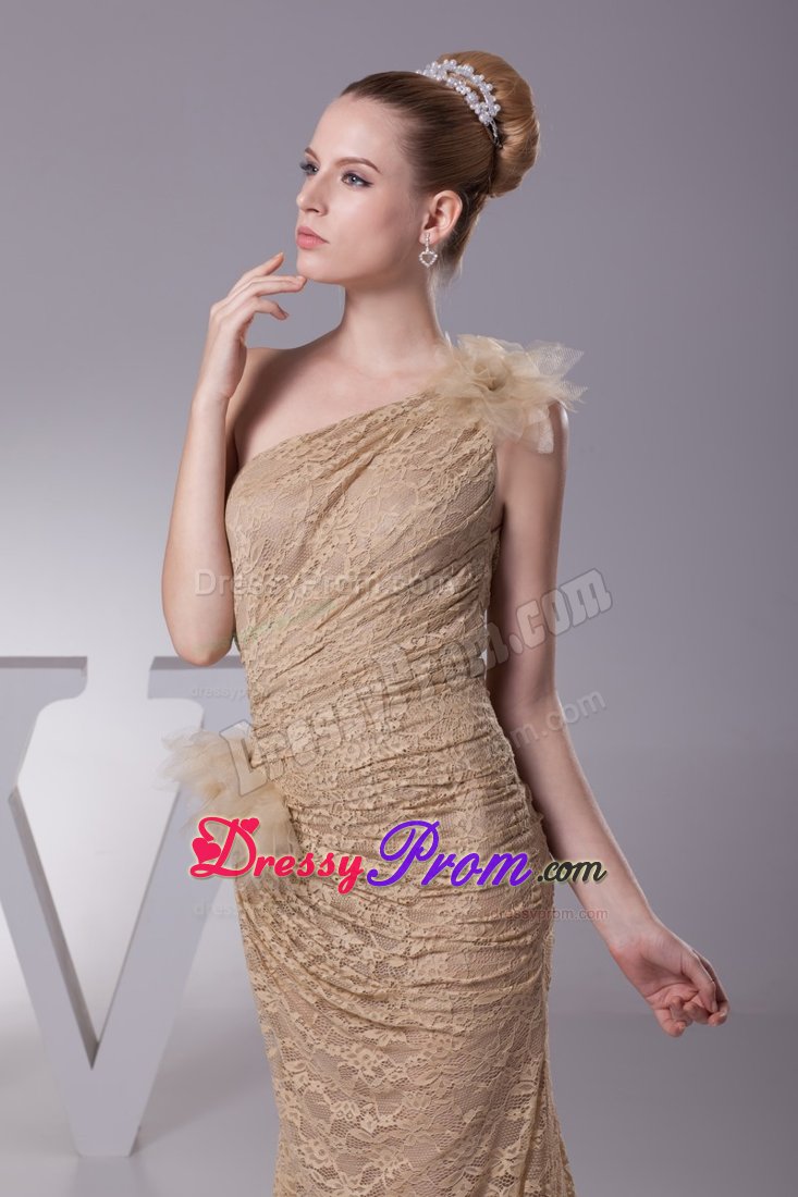 This prom dress features one shoulder neckline with sheath and ruffle silhouette. Made of chiffon and lace material. Back hidden zipper closure. You will be the princess in the party.
