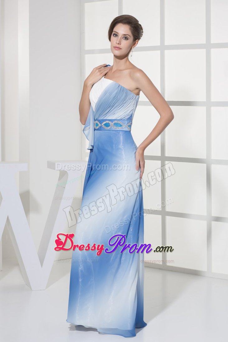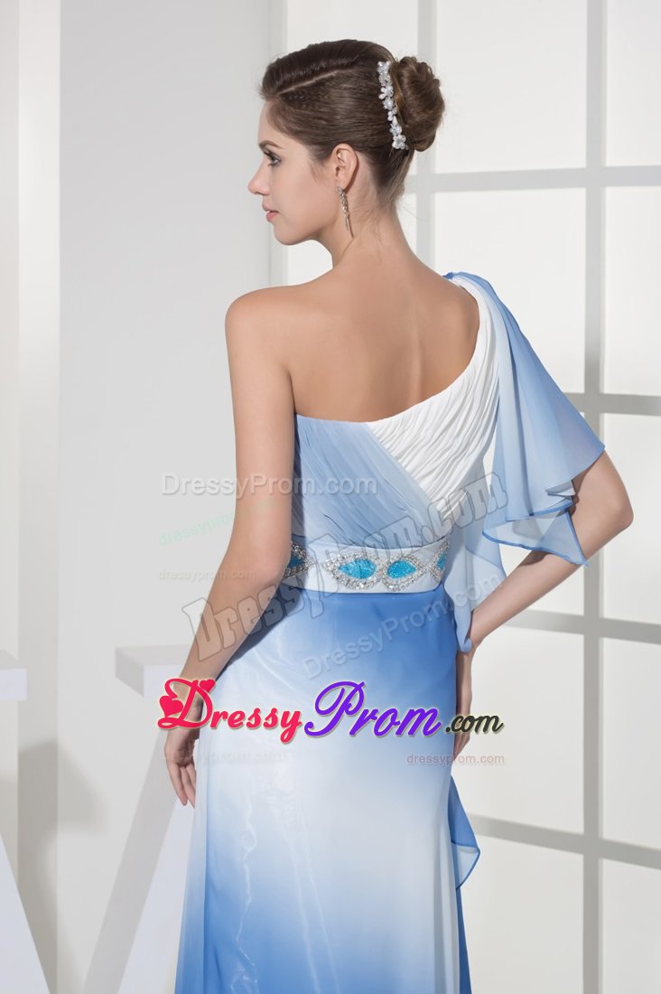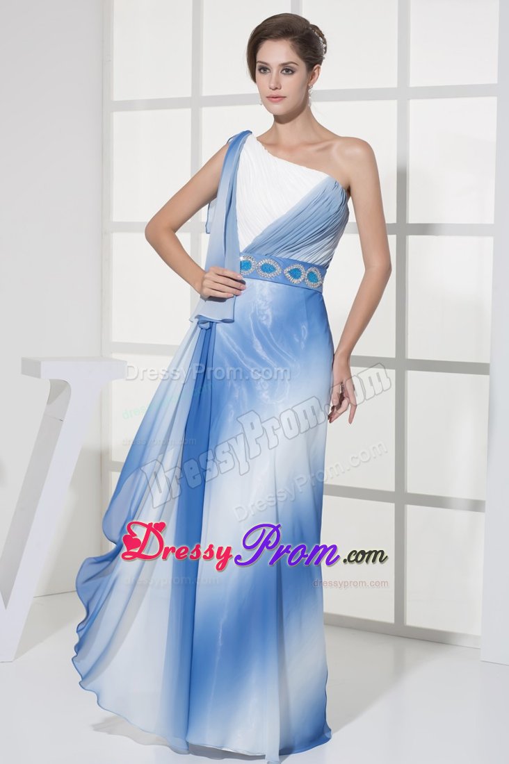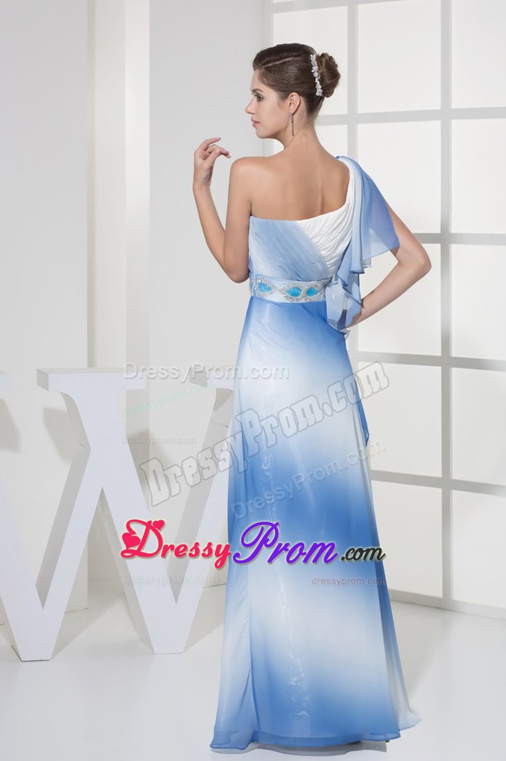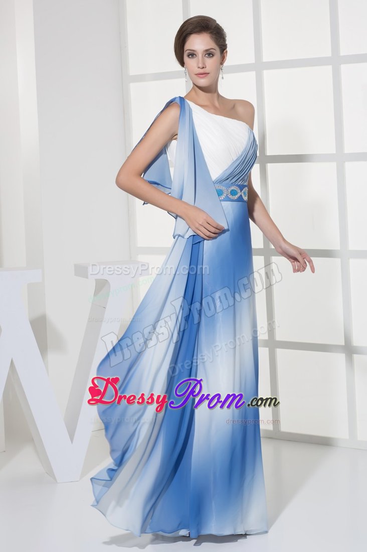 Add a romantic vibe to your party in this colorful prom dress! An asymmetrical one shoulder and pleated fabric feature a fitted bodice. A beaded waistband can outline your slim figure and charming curve. The flowy skirt made from soft chiffon make a beautiful effect.Heads will turn as you arrive at your prom or formal in this elegant long dress.