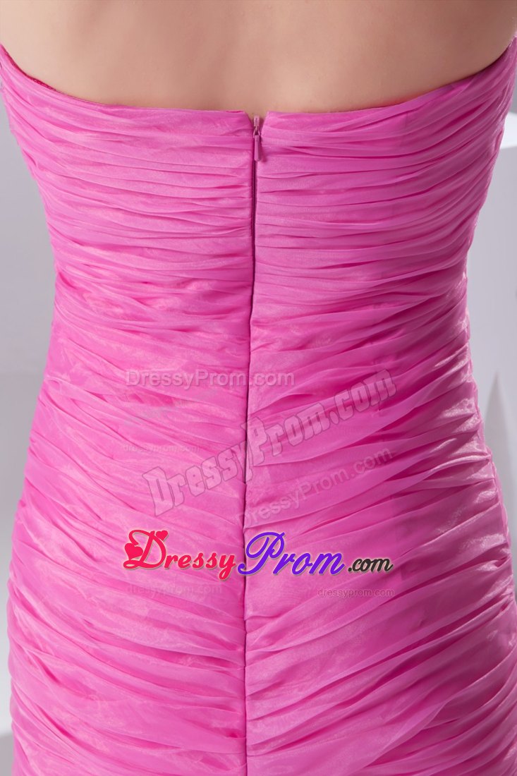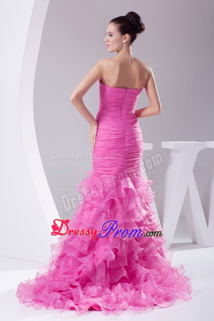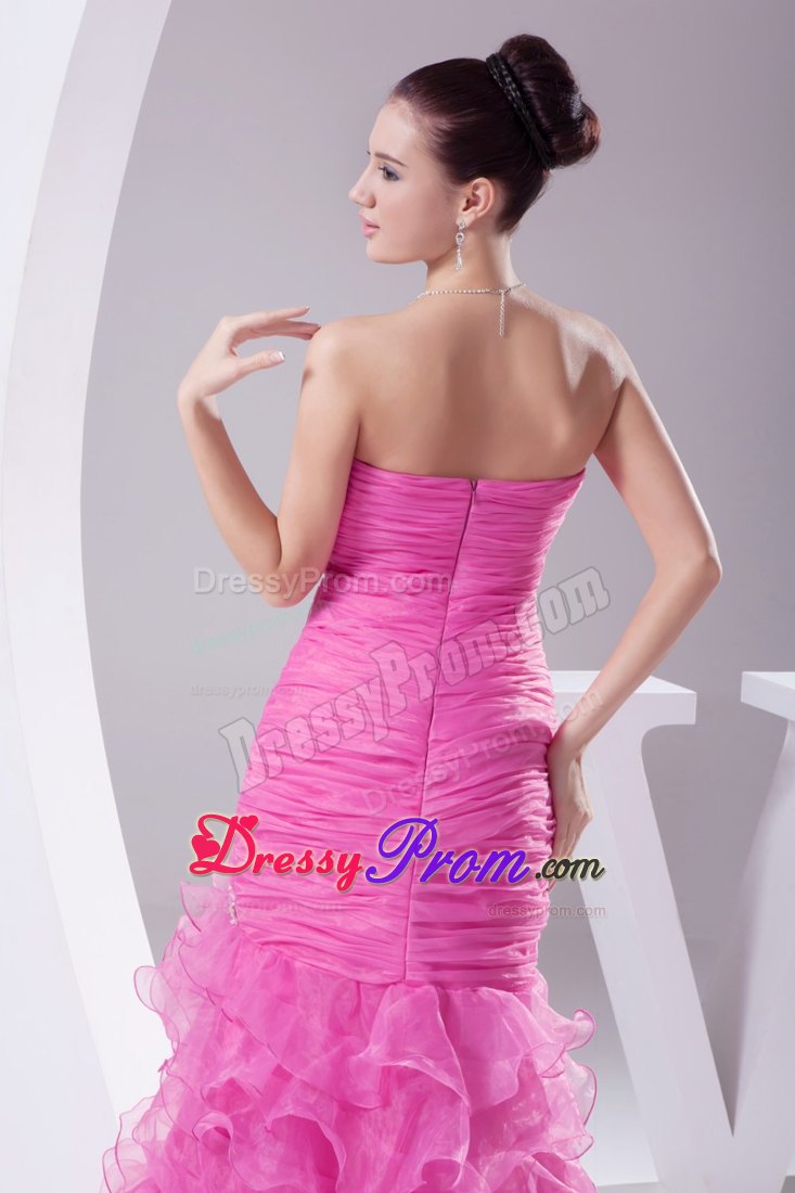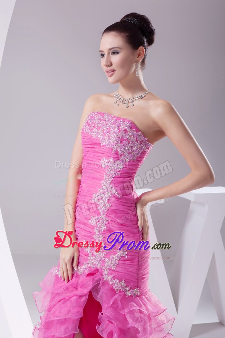 Do you want to surprise the crowd at your next event? This amazing sexy pink evening gown has a glamorous celebrity style with dramatic touches including dazzling beadwork and appliques on the bodice. It features its strapless neckline and mermaid train style. What's more, mermaid skirt together with the a sexy front slit endow attraction to this surprising prom gown.