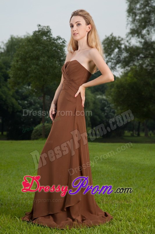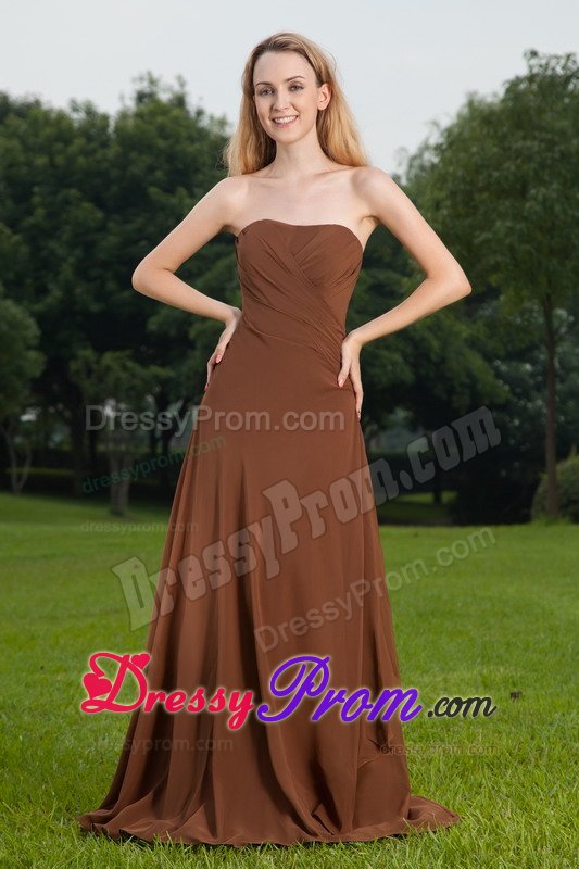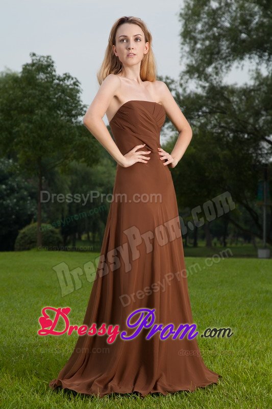 This fabulous bridesmaid dress features strapless neckline, it was ruched in the bodice, this A-line skirt has an elegent lace up closure.
