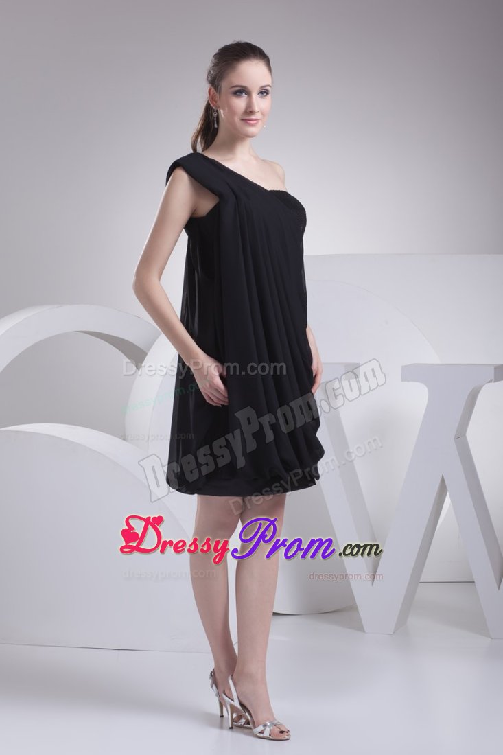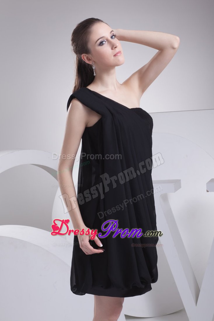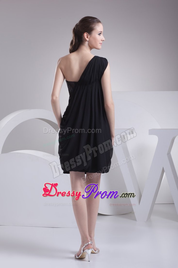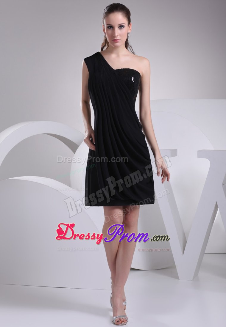 Add an air of elegance to any occasion in this sexy short one shoulder dress. A loose-fitting mini-length skirt endure whatever size. One the back, the big ruffle layer adds the dramatic look for the dress. What's more shinning is the sequins fabric on the bust! Great for homecoming or holiday parties. This short black dress is chic and unique.