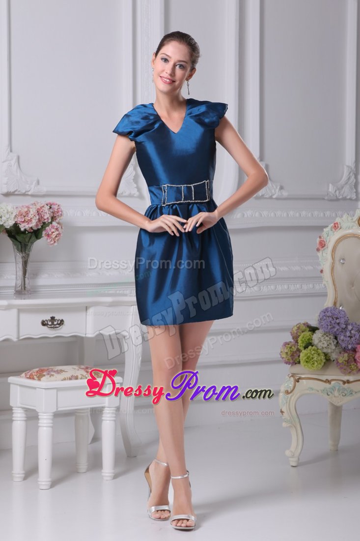 Your prom dress should reflect your style and if you're looking for something totally different and unique to accommodate that style. The dress features a v neckline and ruched sleeves.The beaded bowknot on the front will make you sassy. A hidden zipper makes for easy off and on and secures the dress in place.