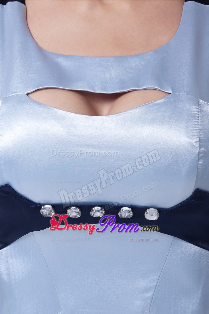 It is a style made to create a sensation. You will love this prom dress with its scoop neckline with a hole design that arise millions of illusion. Other interesting items include a column wrap around bodice and a cocktail length skirt. This dress is also available in a floor length version. If you are searching for unique dresses with an innovative look, this style is just for you.