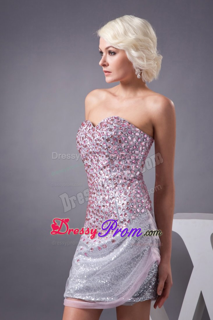 This lilac prom dress is your best choice to attend your party, homecoming or any other occasion. The gorgeous bodice features heavily beaded bust and sweetheart neckline with exquisite beadwork. The mini-length skirt is a perfect choice for dance. A zipper up closure completes this fabulous design.
