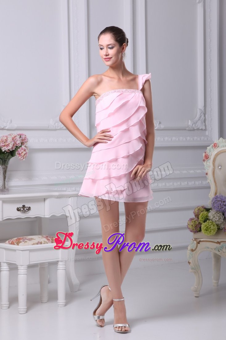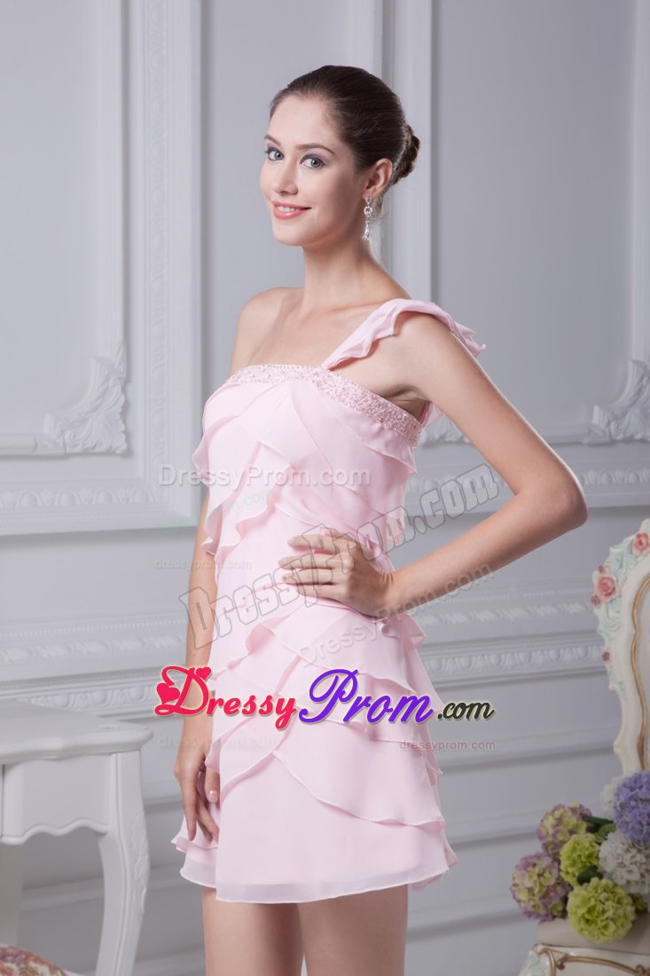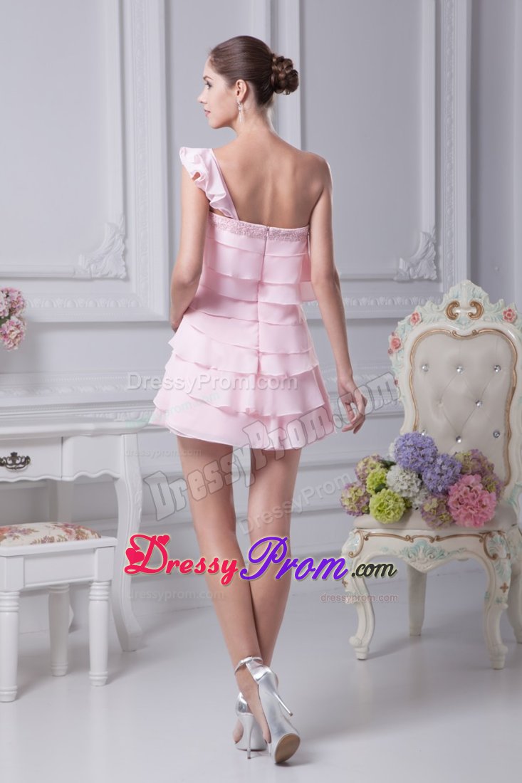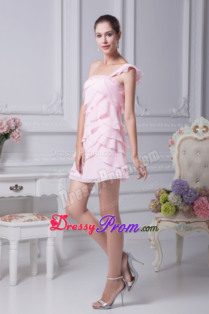 Dramatic touches include the single ruched strap and a seductive lower back that will have heads turning the moment you arrive.This soft and cute short prom dress made by layers chiffon create a flattering shape and hidden zipper in the back add beauty to this perfect prom gown.