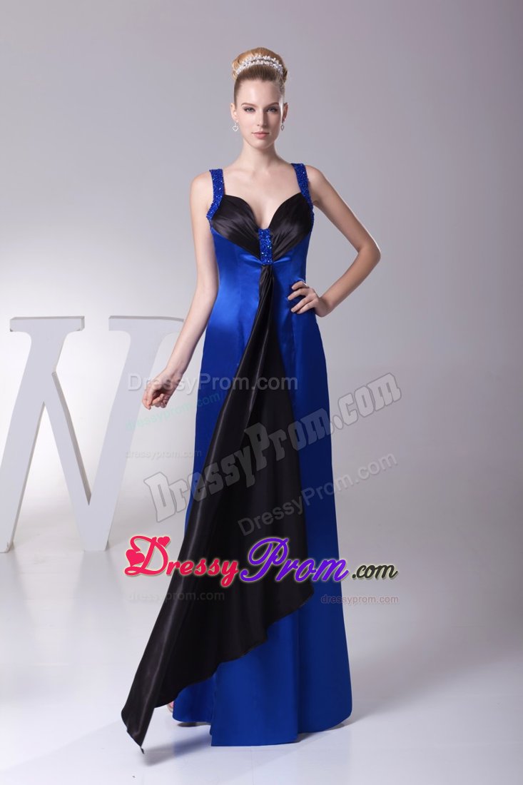 Wide straps, deep V neck,contrasting colors, you can get a celebrity look for less with this stunning empire mother of the bride style! This pretty creation is characterized by the V neckline with delicate ruching embellished the bodiceand sparkling beads decorated the straps. The refined ruffles over the bodice add the exquisite look of the dress. The noble satin skirt falling from the high waist with floor length sways beautifully across the floor when you move, as if you're floating on air.