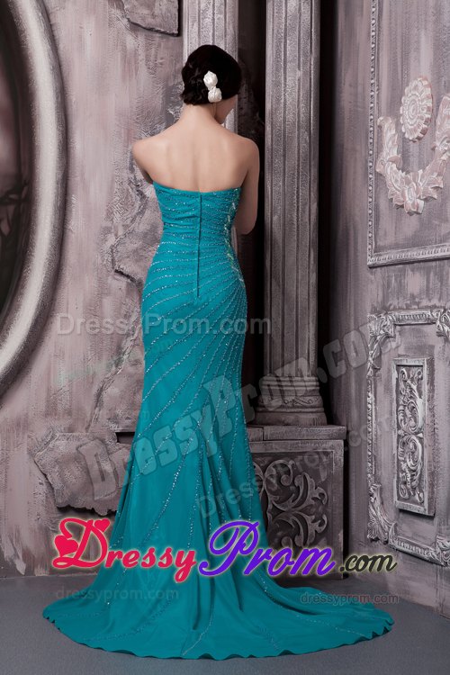 I can find no words that is suitable enough for me to describe my feeling of the dress. The dress is so sassy and stunning that I am sure you will be eye-catching at your party. This shining prom dress features a strapless neckline and the whole dress is adorned with carefully placed and fashionable beadings. The magnificent pattern on right side continues the already sexy dress more unique. The train adds more beauty and grace to the dress. The back features a zipper up closure that ensures a perfect fit, you will be the shinning star when you wear this dress!