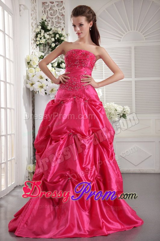 The fuchsia dresses are the way to go if you are looking for a style to show off your elegance and sex appeal. They are classic, timeless and show off your body in a very flattering way. This one is a great example of what we mean. It features a strapless bodice. It boast slight pick-ups that create a beautiful silhouette when worn. Just a great and classic style � perfect for any social function on your calendar.