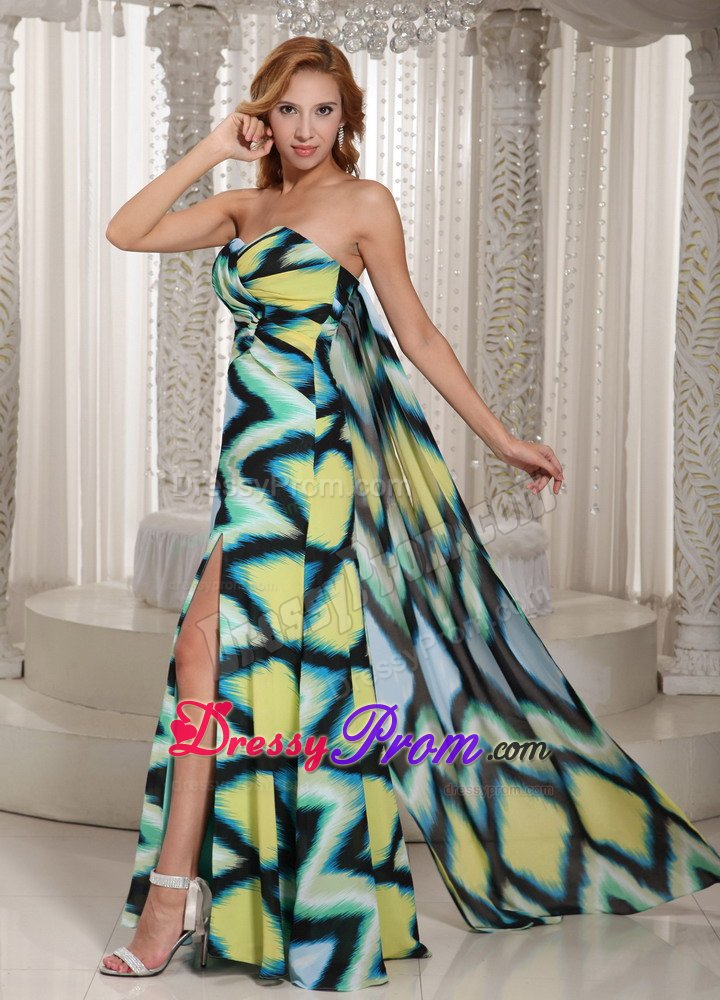 Simple style with several unique designs will never be outdated. This sweetheart prom gown features cross style in the bust and the side slit in the skirt. What's more, this perfect gown is made of colorful fabric, which will give you a sense of nature. The floor length skirt ends with a little train in the back. What a chic and fatastic gown for any girl who wants to be standout.
