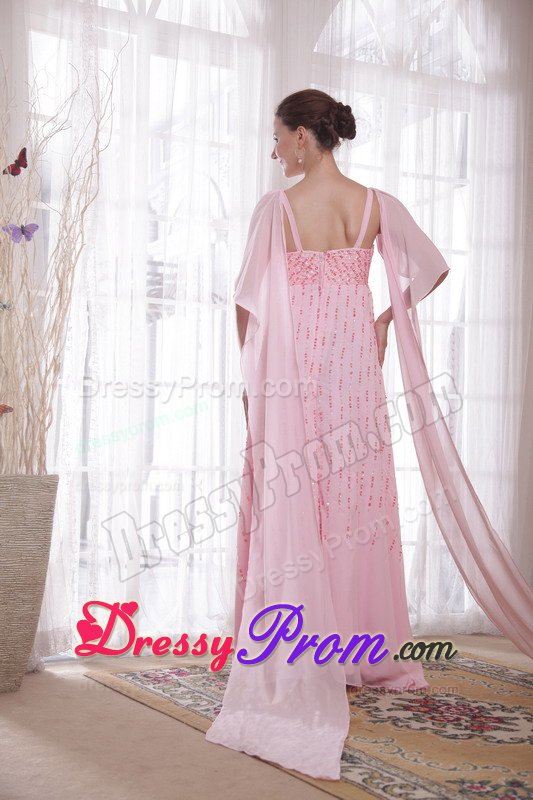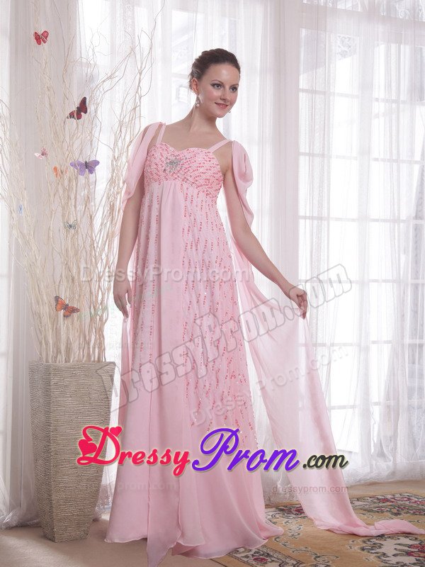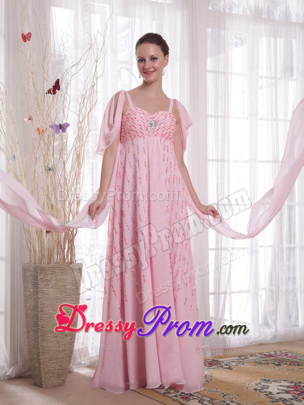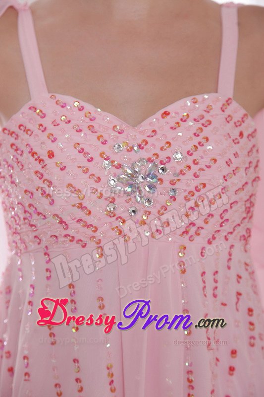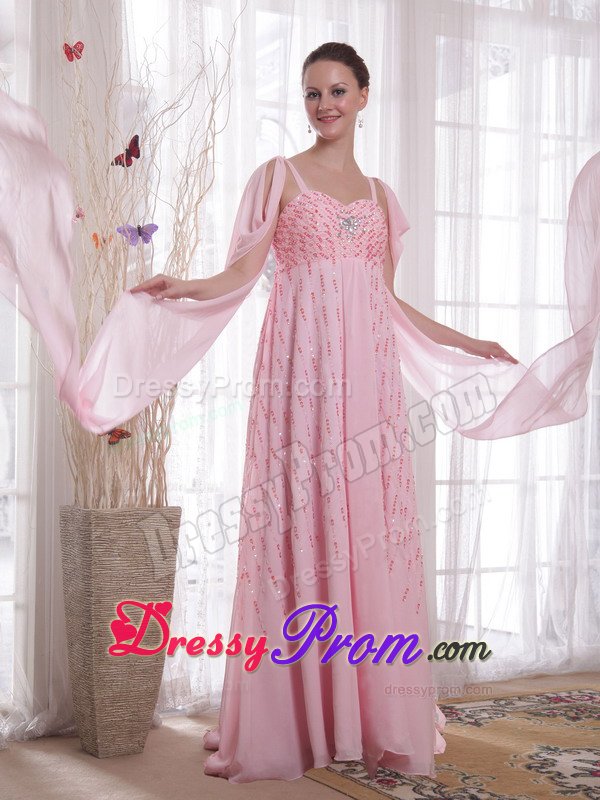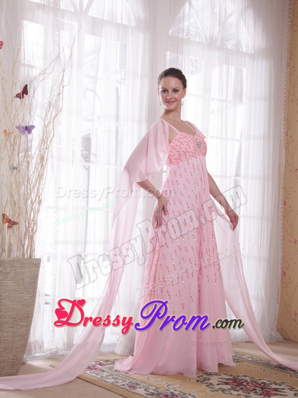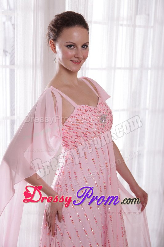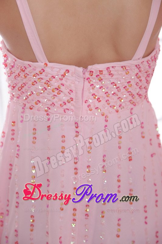 It's made of a special sequince fabric. It features a sweet heart neckline ,two straps and shine embellishments.A sheath of fabric is woven into the bodice and flows across the shoulder like a shawl, which is the most stunning focal point of this gorgeous prom dress. A zipper up completes the design.