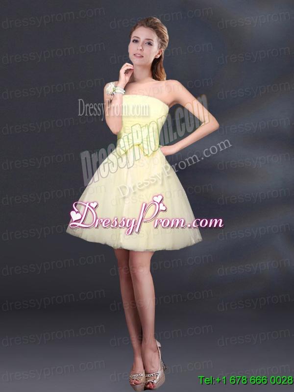 2015 Bowknot A Line Strapless Prom Dress with Lace Up