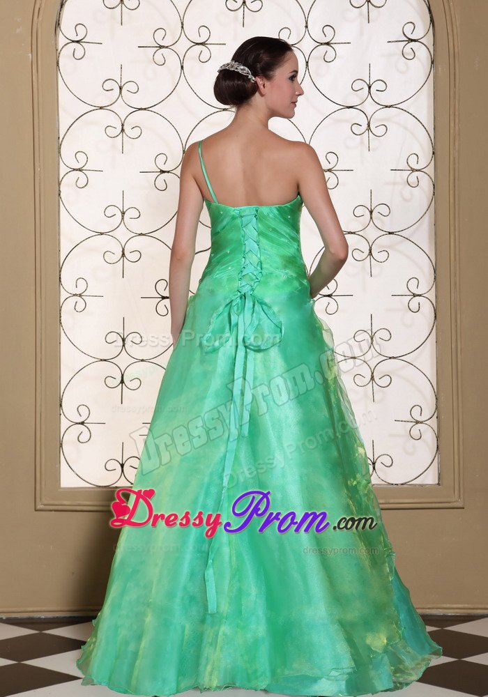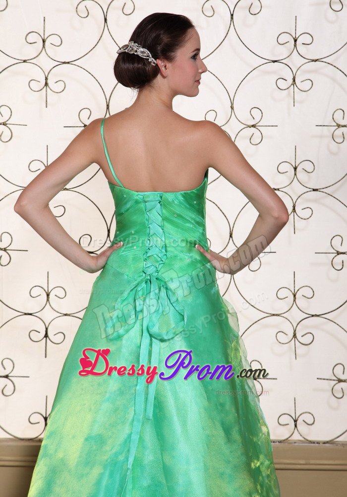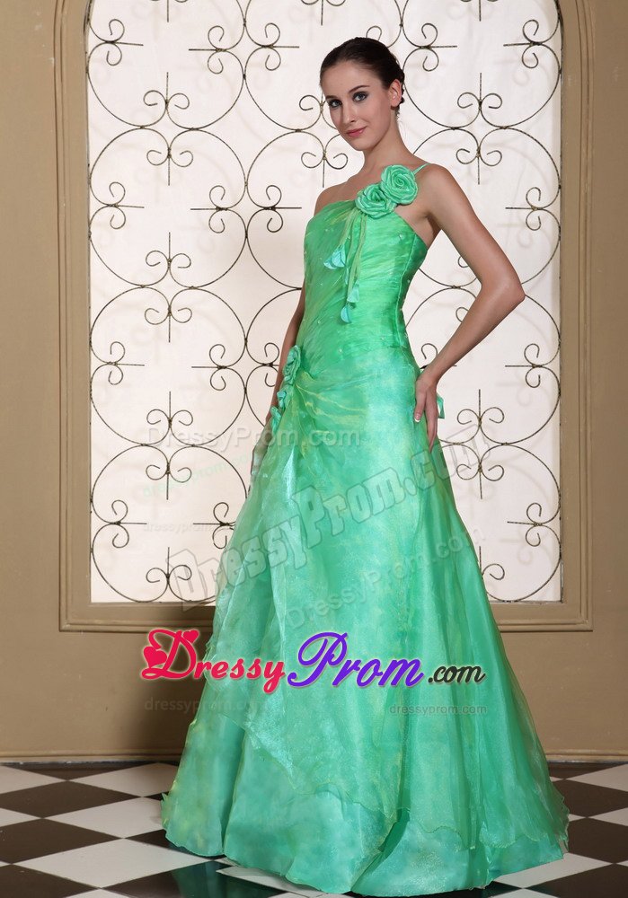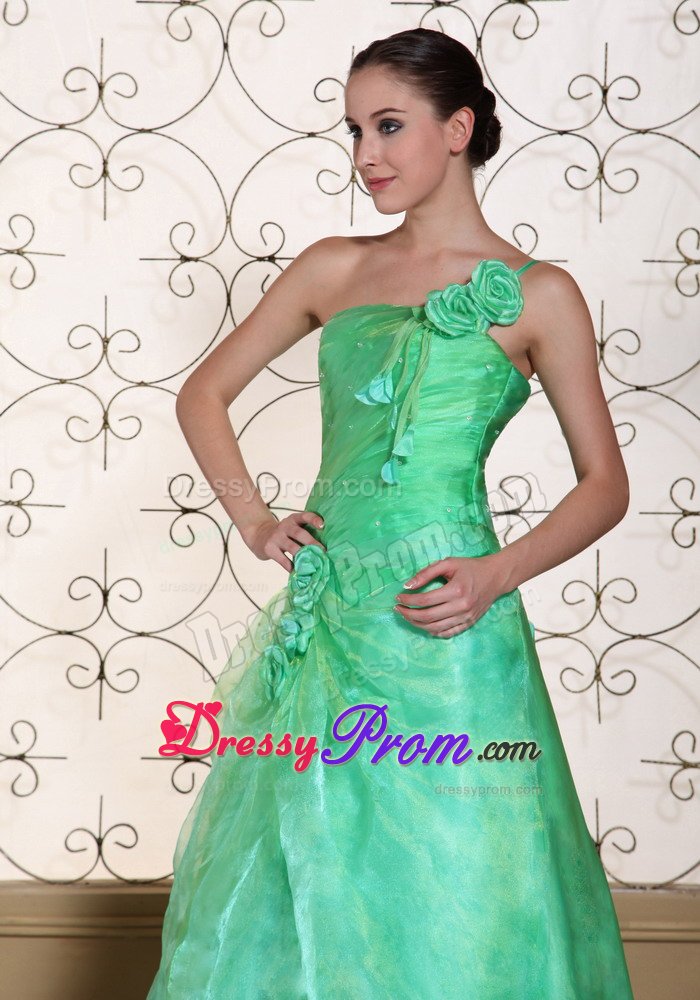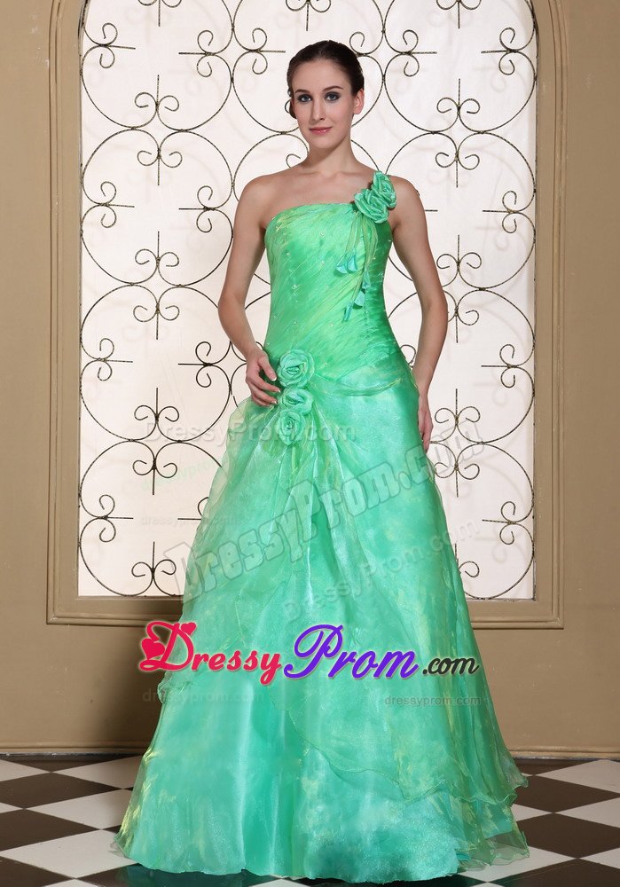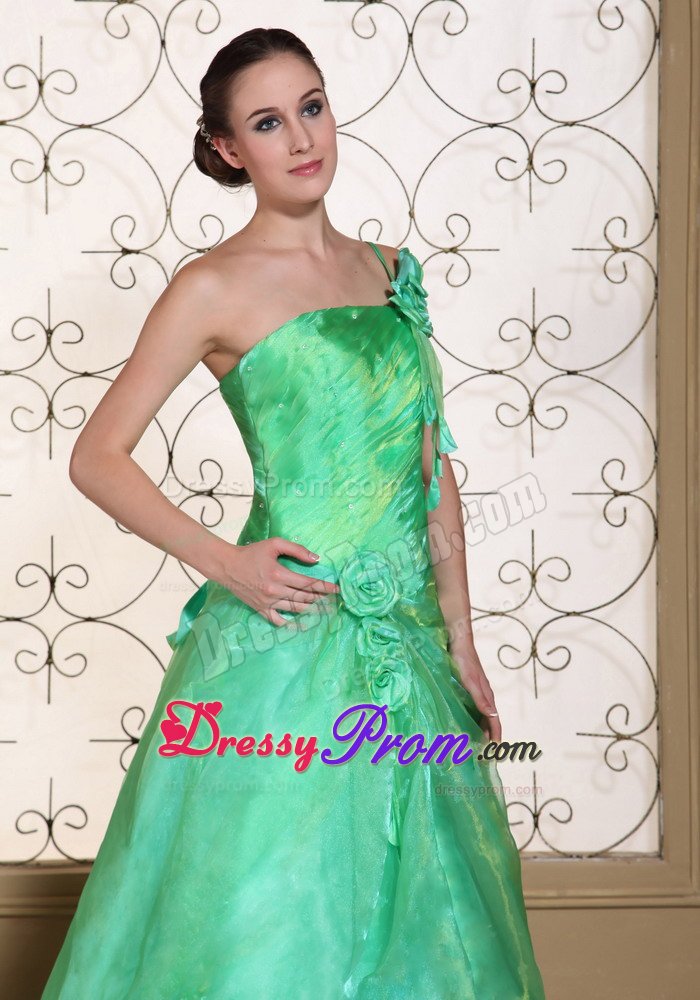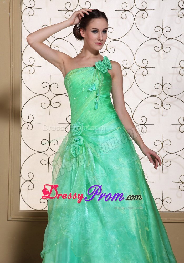 What a graceful dress. This romantic prom dress features its one shoulder design in A-line silhouette. Pleated bodice and unique organza and taffeta bottom, both add beauty to this skirt. What's more, the lovely delicate handed flower on the shoulder and hips add your elegant statues. Simple elegance and simply elegant.