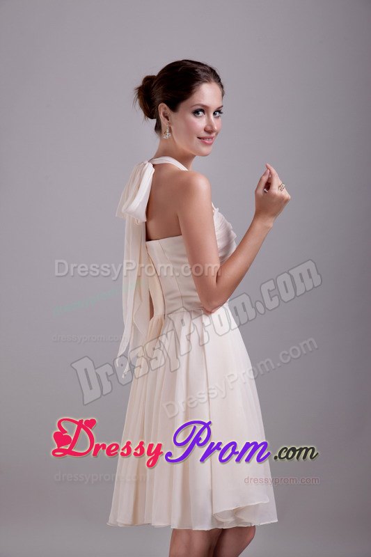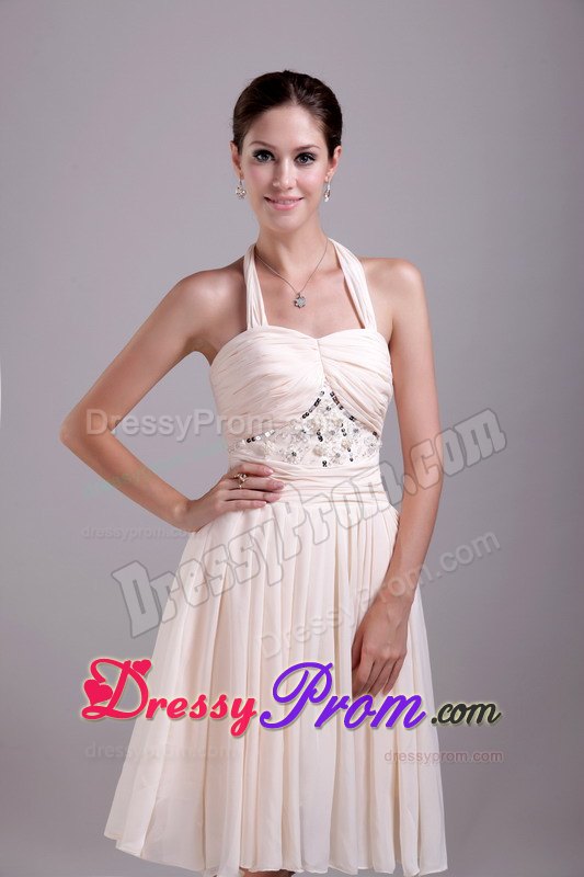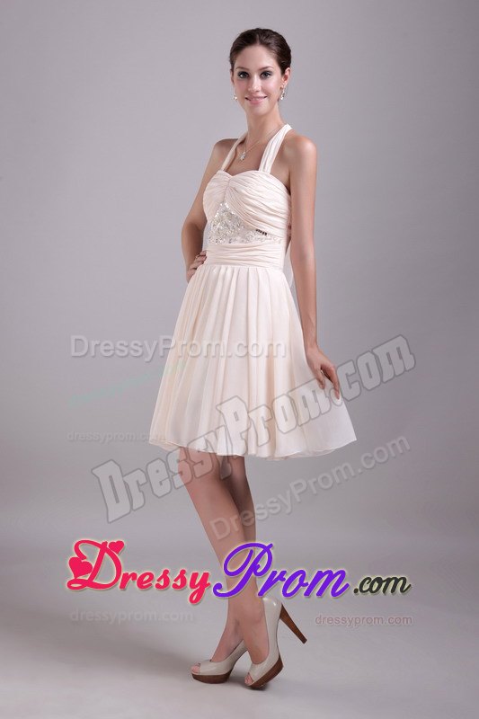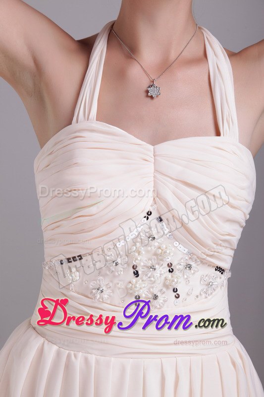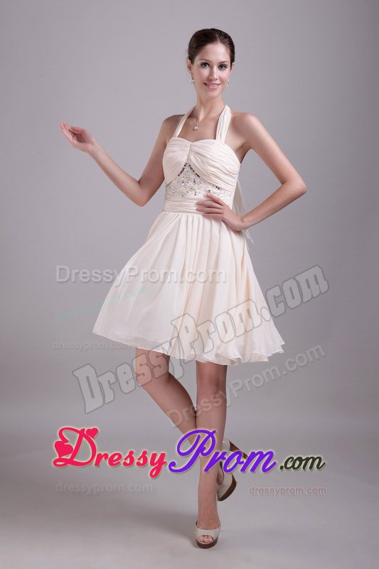 This is a rare dress with halter-top neck! It features a fitted bodice with ruched bust. The ruches on the waist accent your waist line. Exquisite beadings on the midriff highlights the dress! The sexy open back will make you outstanding on your event. Who will not love this dress?