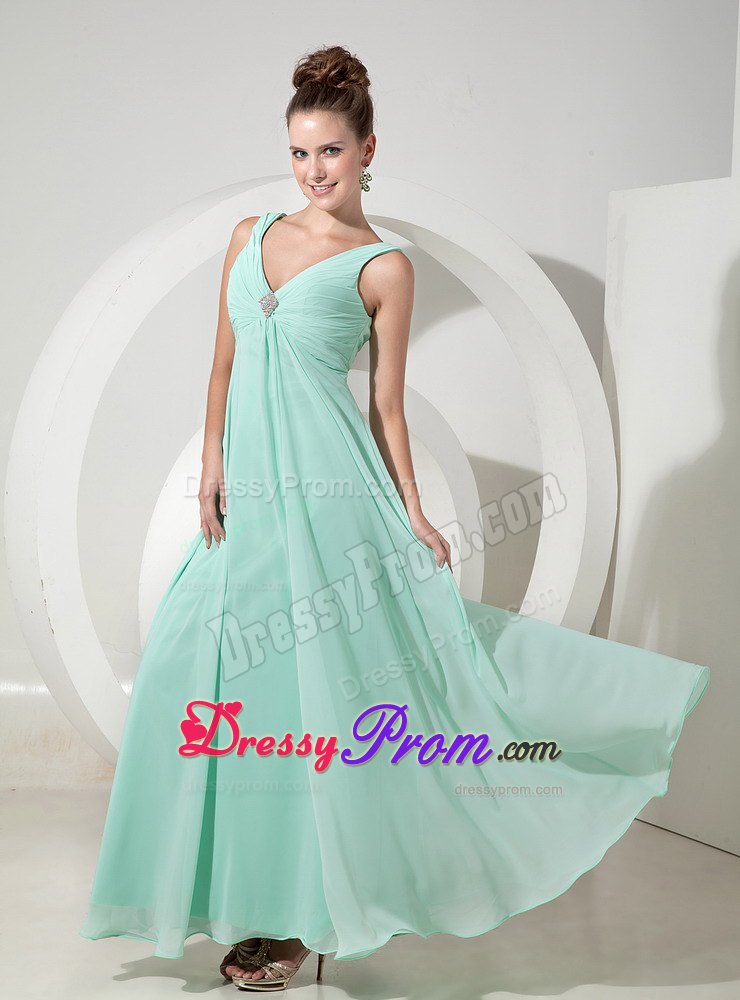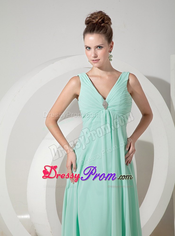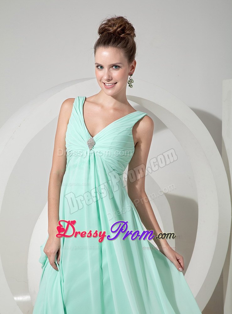 If you're looking for a chic and elegant design for your next event, you can stop your steps here. This one will definitely suffice. It features a gorgeous halter-style bodice with a V neck and lovely beaded brooch in the center. The skirt is fitted and it falls in soft lines to the floor, creating a lovely silhouette. Follows the deeply cut V back, a hidden zipper in the back secures the dress in place and ensures a great fit. Just a very flattering design for any body shape or style.