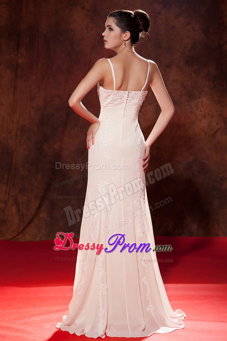 If the one with the most style wins prepare to claim your crown! This amazing sexy prom dress has a glamorous style with dramatic touches including dazzling embroidery throughout the dress, spaghetti straps, and an elegant mini train that cascades to the floor. Wearing this dress will make you eye-catching.
