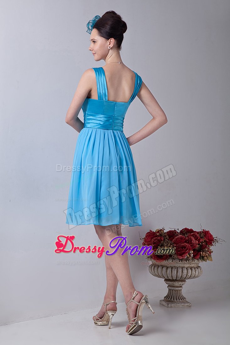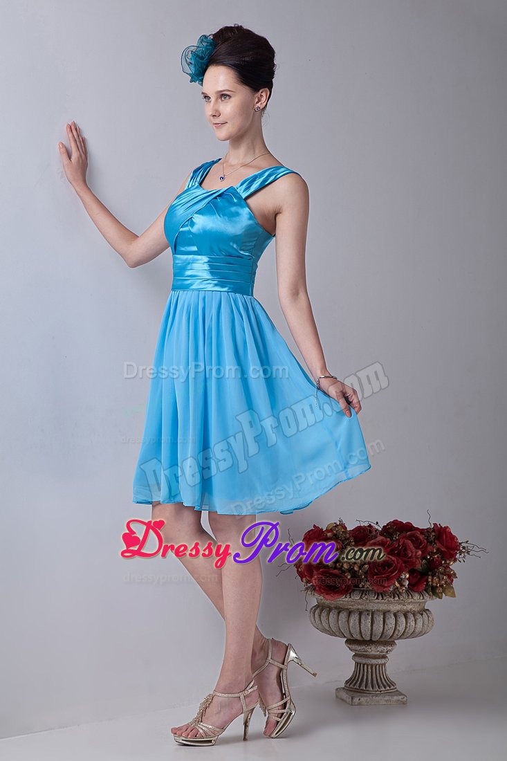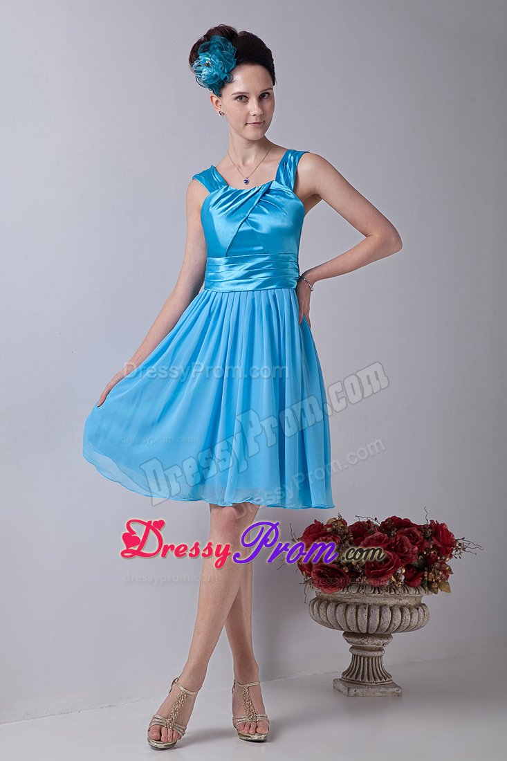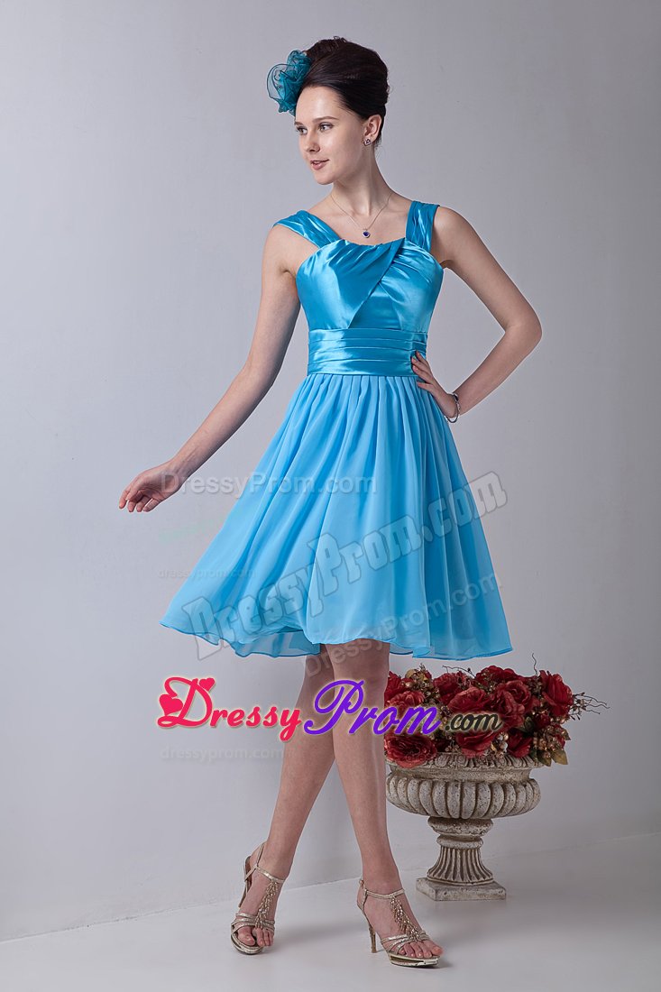 Classic and elegant prom dress is modern and stylish! The structured bodice crossed two bands on the bust has straps and straight neckline that show off your perfect figure. The broad ruched waistband adds details on the taffeta dress. Soft and sleek taffeta will give your skin intimate care and look beautiful. The short skirt with a loose comfortable fit is made of flowing, romantic chiffon that let's you dance the night away in style.