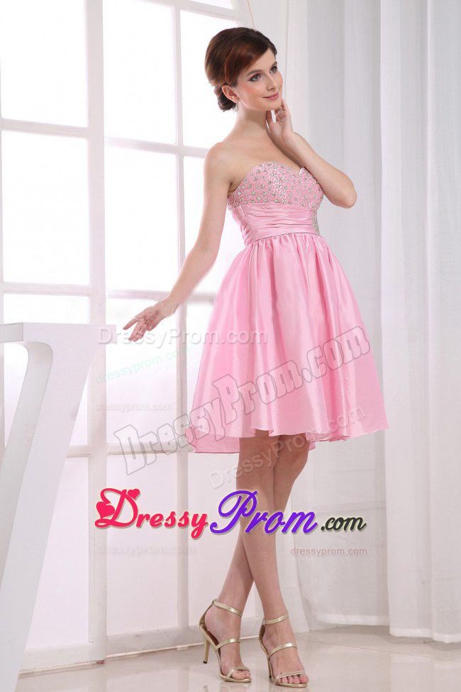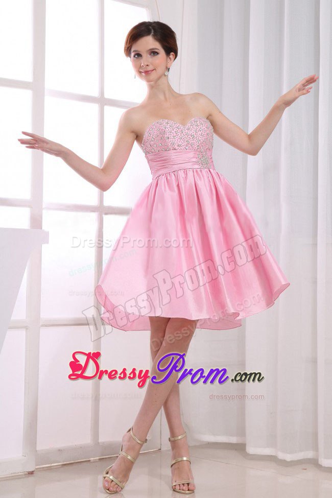 Elegant yet lovely. This beautiful dress features a sweetheart neckline with twinking beading features the bust,which gives a fatastic look for the whole dress. Your slim figure is emphasized with a pleated wide waistband. A-Line Knee-length skirt adds your lovely. Wearing the dress, the elegance and poised temperature is displayed entirely.