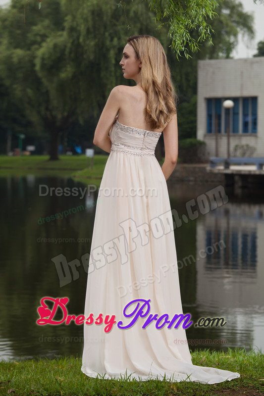 The strapless prom dress features a ruched bodice with the neckline accented with sequins and beadings. Your slim waist will be emphasized with a waistband encrusted with sequins and beadings. The skirt made of chiffon is very flowy and comfortable to wear. Do you want to experience the felling of princess? This amaranth prom dress will make your dream come true.