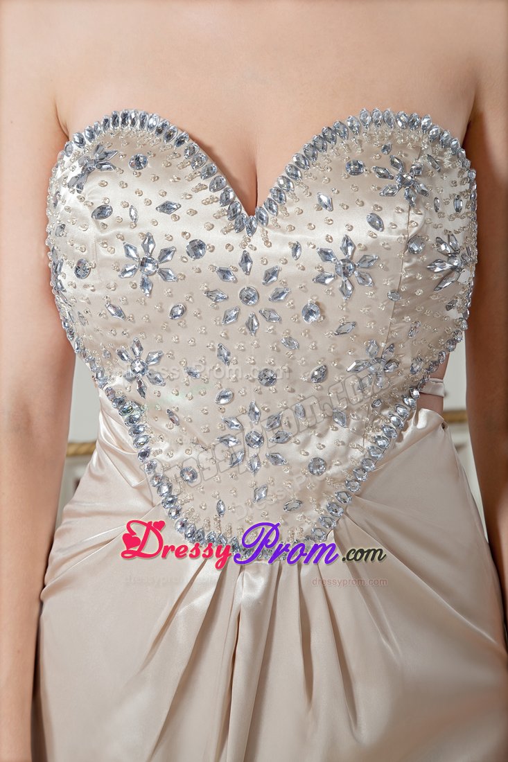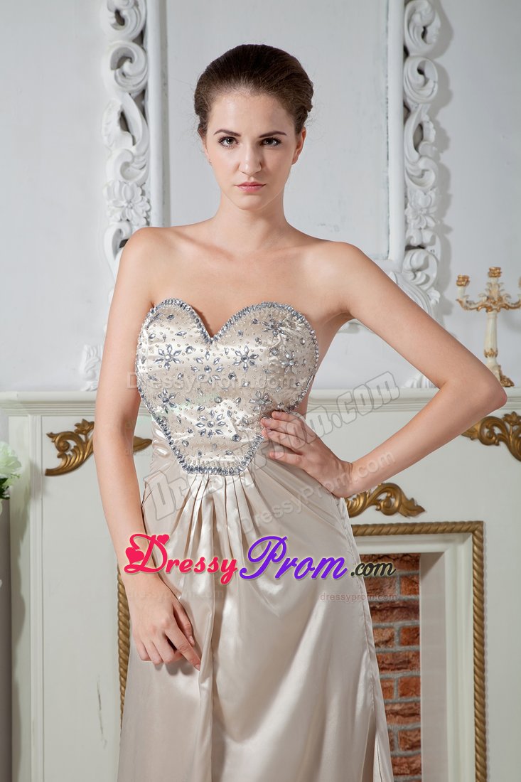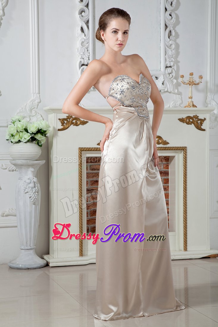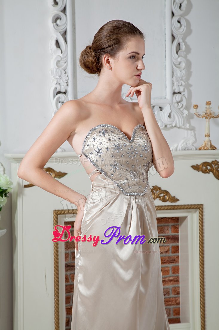 Dressing the ball gown of prom style, you will light up the night! The bodice with a heart-shape overflowing with floral beading let you a pleasant change of atmosphere. The floor-length skirt has several lines to add beautiful design. The back with some spaghetti straps crossed show off your sexy side. This prom dress will make your dream come true!