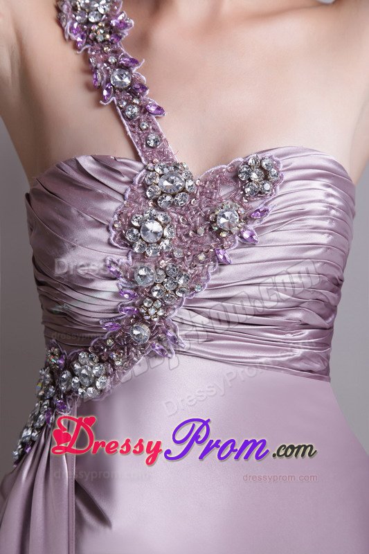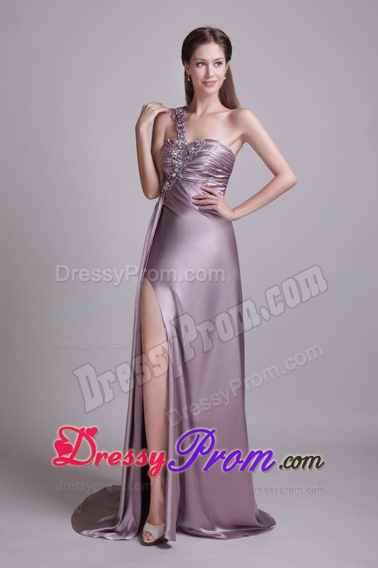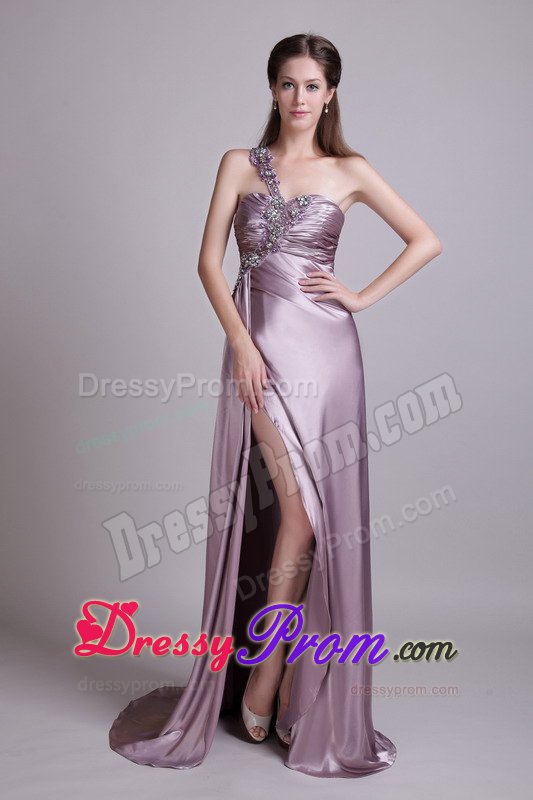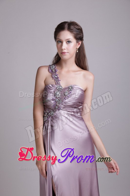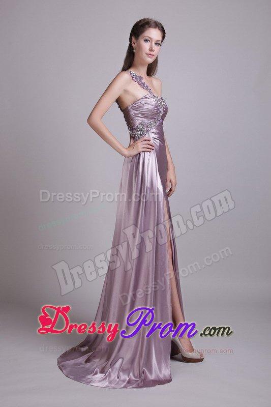 Mysterious and graceful combine to create this great dress. It features a gathered texture bust and one strap bodice that's embellished with stylish beading.The skirt has an empire-waist and falls in soft, clean lines to your feet where it pools in luscious puddles of fabric and the right side slit add allure.The simple yet intricate designs in this dress will surely make it a favorite.