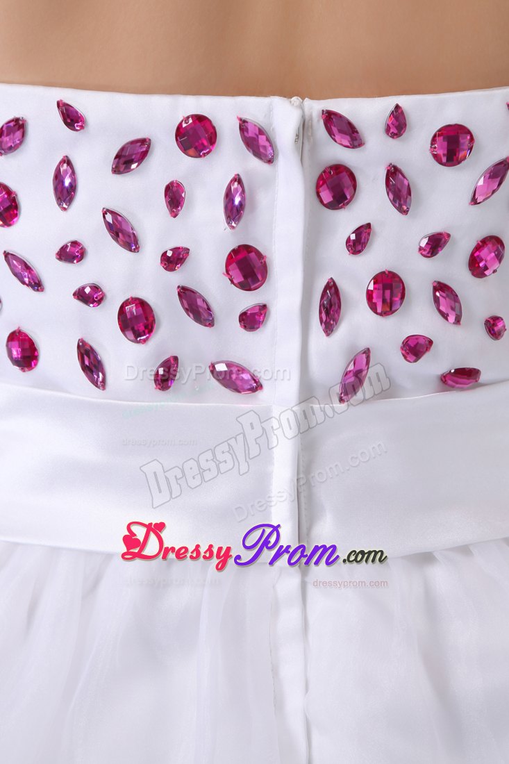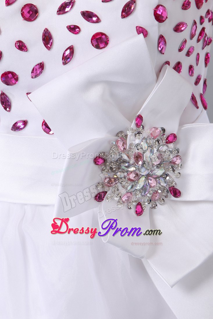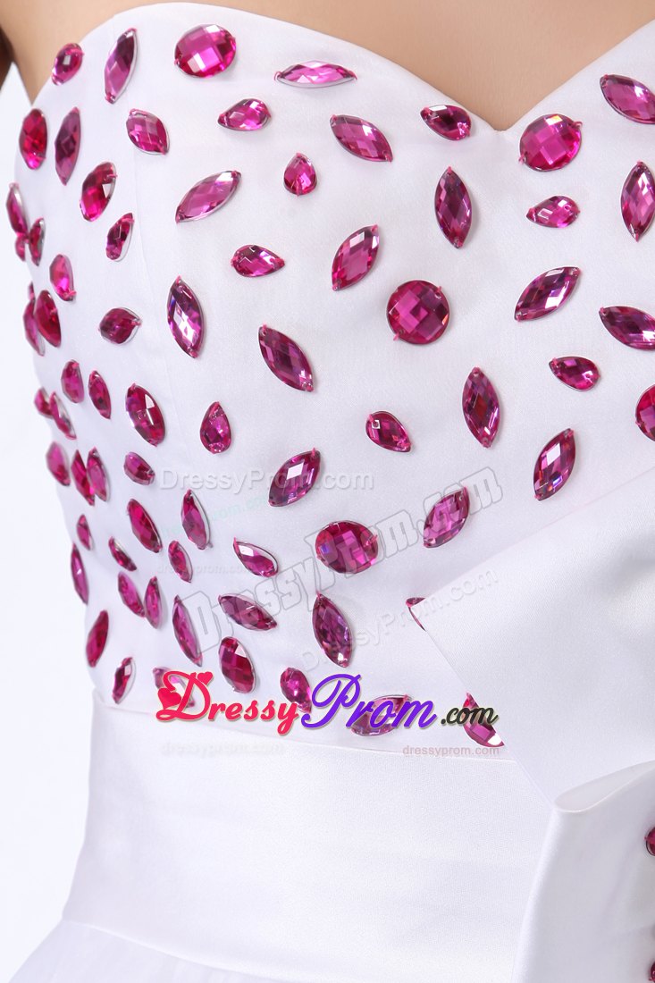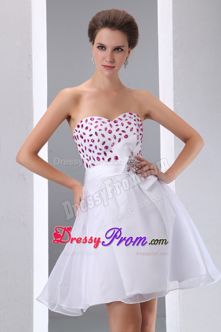 Show off your sexy legs and dreamy shoes! This cute and sexy mini dress is adorned with the fitted bodice all covered with beautiful beadings and the sweetheart neckline which curves your bustline. The waist is contoured by a wide waistband with a big bowknot decorated the band on the left side. The centre part of the bowknot is also decorated with colorful beads which also adds charming and fantasy to the already lovely dress. The A-line skirt flatters any figure with the tulle fabric overlaid flowing freely. The hidden zipper on the back allows easy off and on and secures the dress in place.