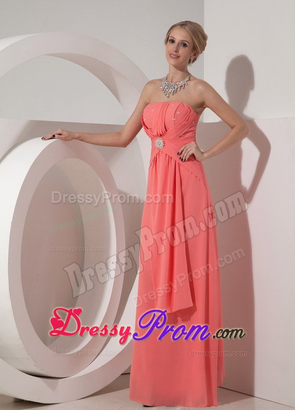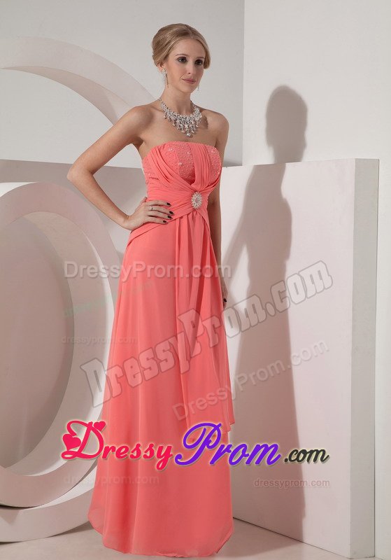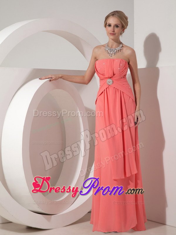 Strapless dresses are quite lovely and quite popular. This one is a great example of why. It features strapless bodice with a lovely embellishments throughout. Ruched fabric in the bodice crisscrosses the midsection of the dress and also creates a lovely waistband. The bodice features a pretty gathered texture and the breezy skirt is made from multiple tiers of fabric that add even more movement to the design. Hidden zipper up style finishes the perfect gown. A beautiful choice for any formal event or function.