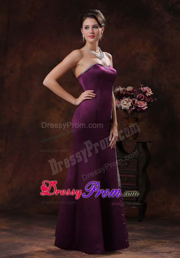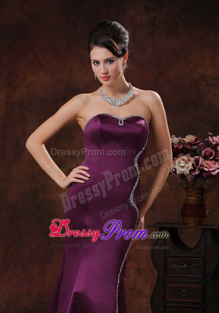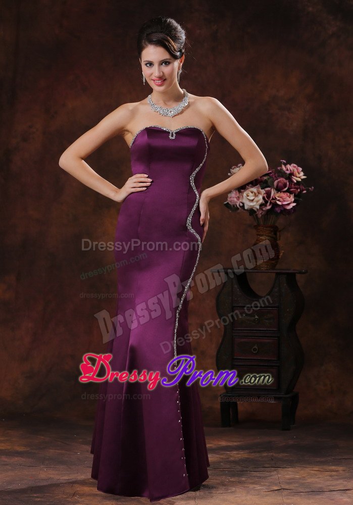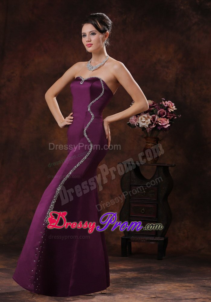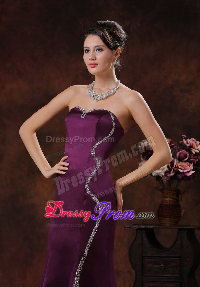 Do you want to surprise the crowd at your next event? This amazing sexy purple dress has a glamorous celebrity style with dramatic touches including dazzling beadwork on the sweetheart neckline and extend from left bust to the feet. What's more, mermaid floor length skirt together with the a sexy open back endow attraction to this surprising gown. The back features a zipper up closure that ensures a perfect fit.