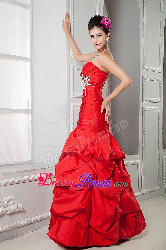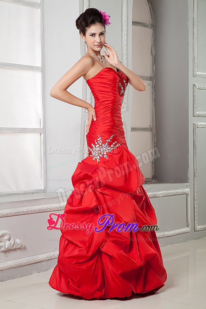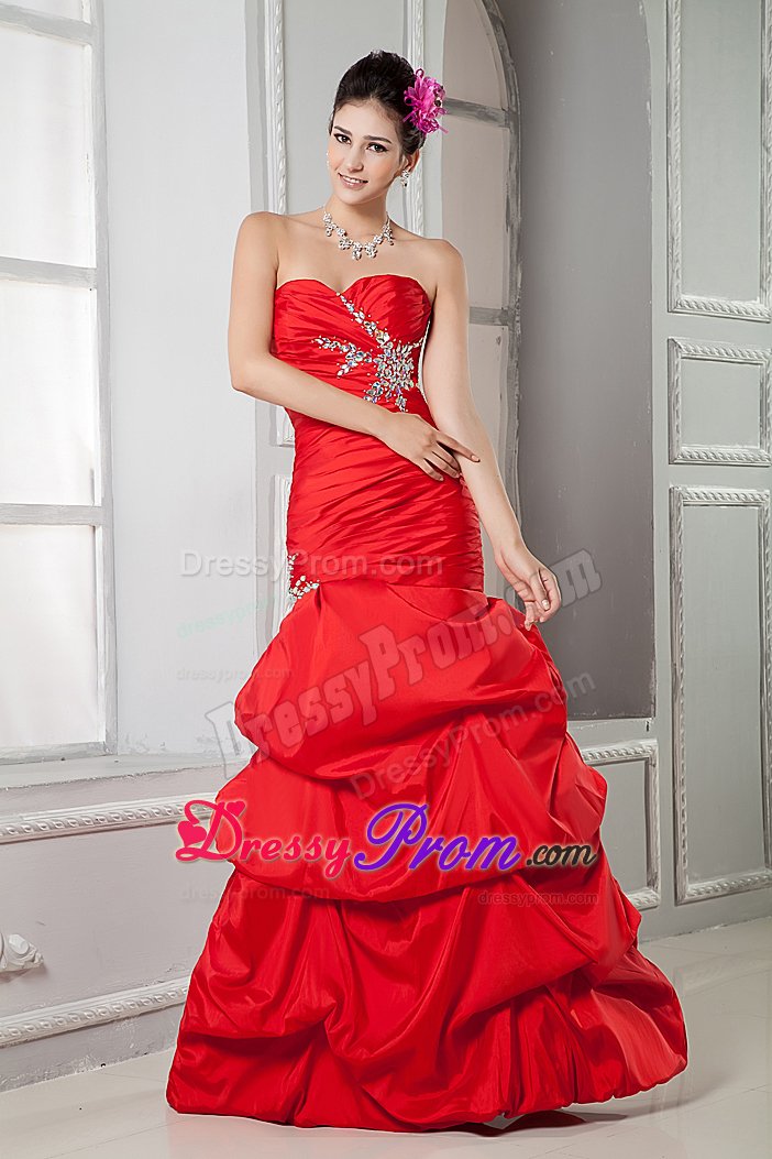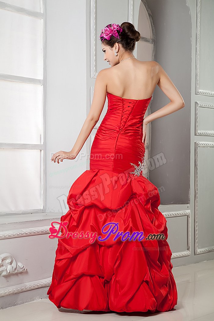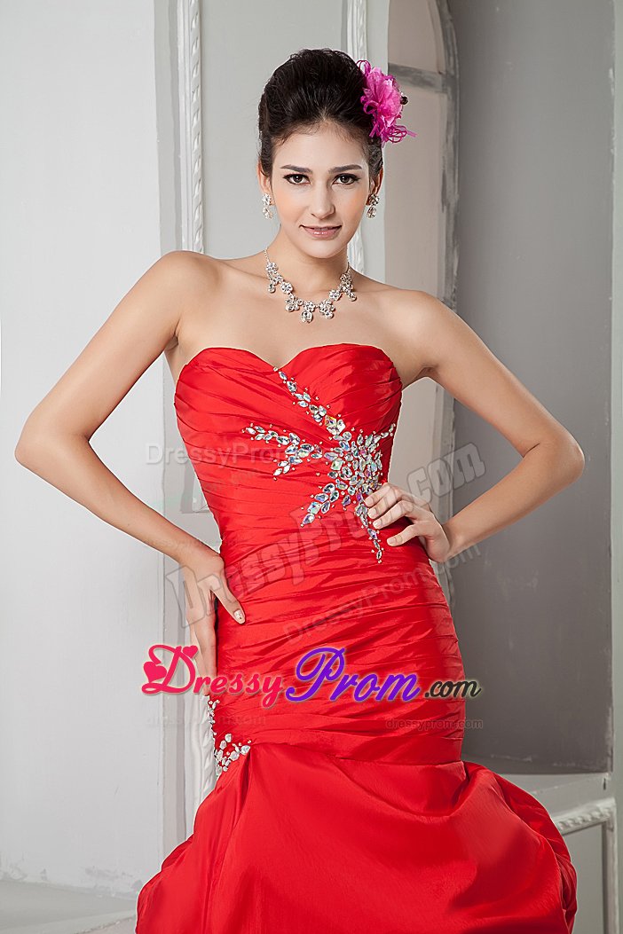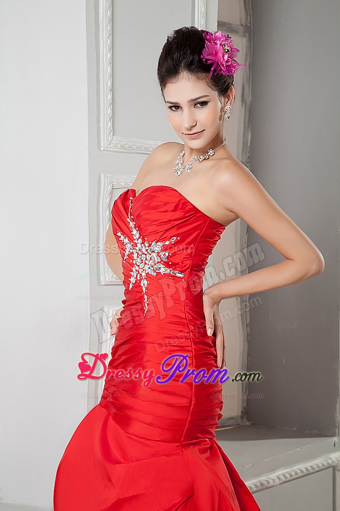 If you are looking for one style to show off your slim curves, this red prom dress is a your perfect choice. It features a lovely sweetheart neck that show the beauty of your delicate shoulders. The stunning bodice is encrusted with asymmetrical pleats and claw-gathered crystals on the side of waist, while the floor length skirt opens to a fishtail silhouette accentuated with bubbles and pick ups. A lace up tie back completes this gorgeous design.