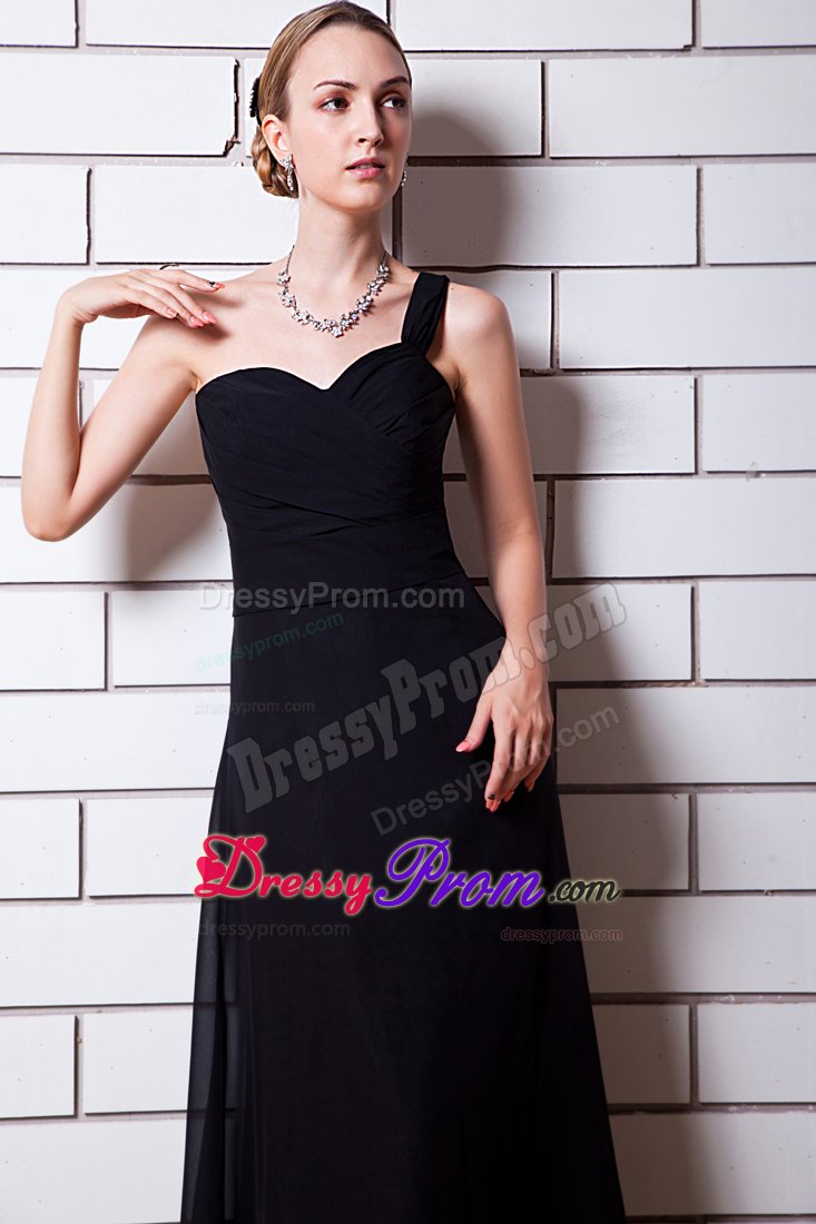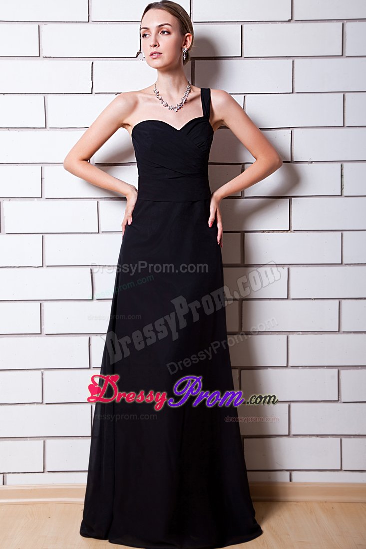 Be the belle on your prom in this simple yet elegant black dress. It's chic and graceful for the one shoulder strap and lovely sweetheart neckline. Crossed ruching flatters your curves. The flowy chiffon continues to make the already sexy dress more gorgeous. Zipper up back finishes the amazing design. It is a wonderfull dress, so glamorous, so stylish � perfect for any occasion!