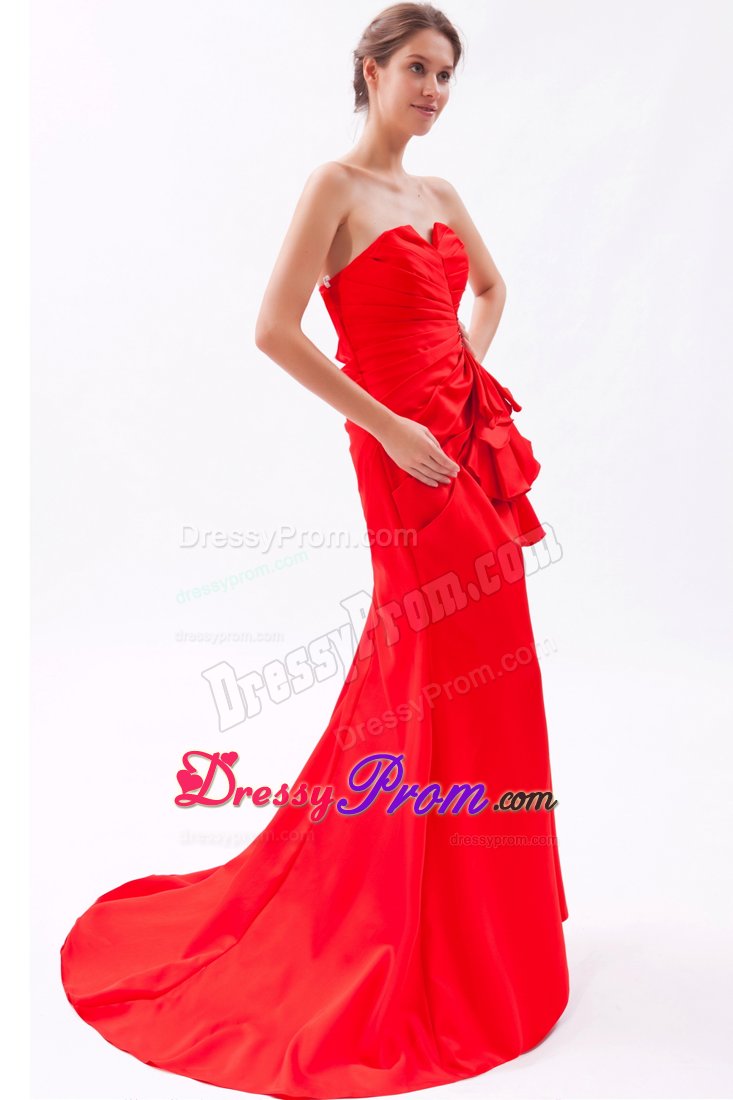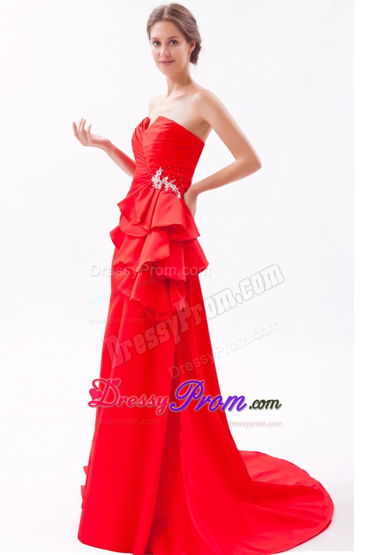 Go for the glamour of Hollywood at your homecoming or winter formal in this stunning red strapless dress. A sensational strapless formal dress featuring a notched neckline and a pleated bodice with dazzling beaded accents gathered by the right of the waist. The layered ruffles on te right adds to the lovely glamour. The flowing chiffon skirt falls beautifully to the floor in the back to create a dramatic look. The corset style back ensures a perfect fit.