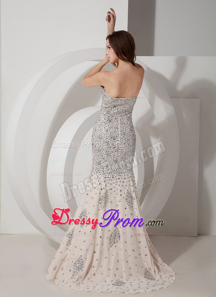 Dramatic details and a slim silhouette give this long formal dress a celebrity style that is sure to turn heads at your prom or black tie event. It features a strapless bodice with a sweetheart neckline and is heavily decorated with exquisite beadings. A seductive side slit lets you glide across the dance floor with ease.