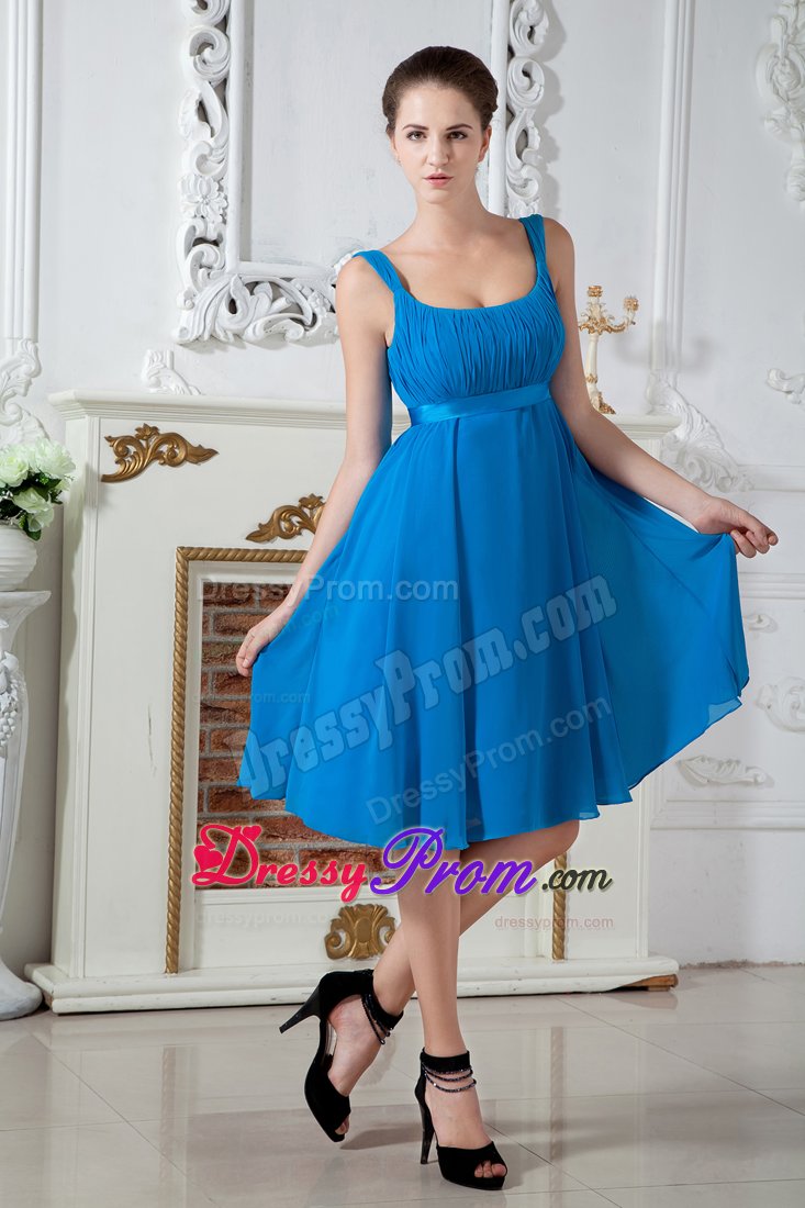 This sweet dress with two-shoulder straps is a darling choice for those dressier occasions. Crafted from classic chiffon it features a pleated bust line, and the smooth taffeta material extend across the waistline. The lightweight skirt falls in soft pleats and moves softly along with you as you move � creating a luxurious feminine feel. Although pictured in a fresh blue this dress is available in several other color choices.