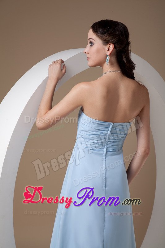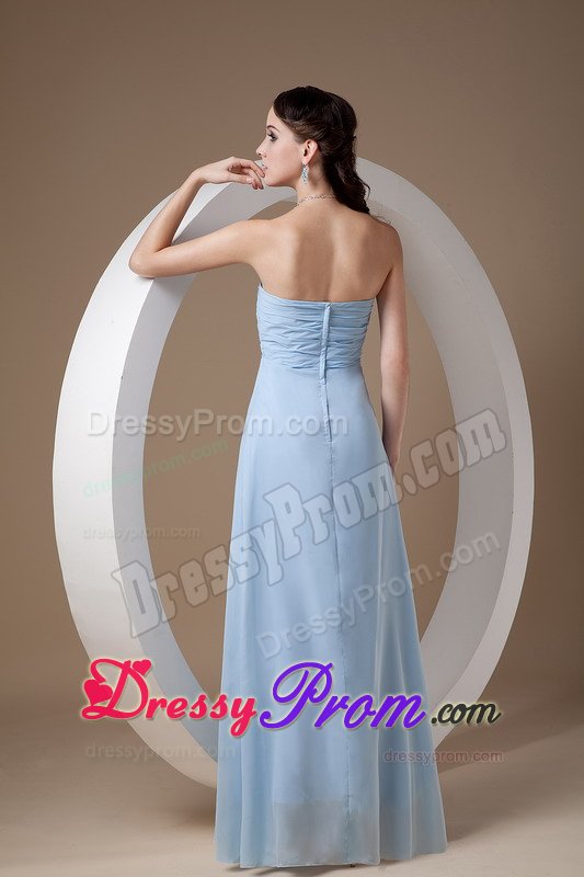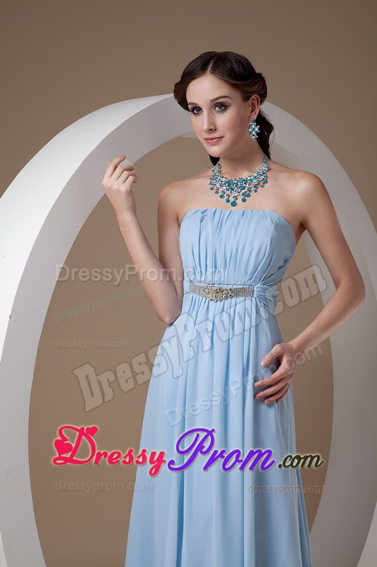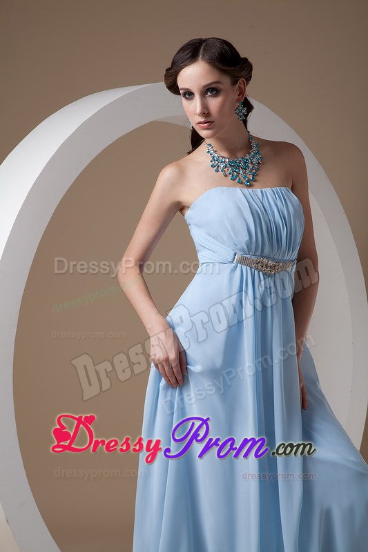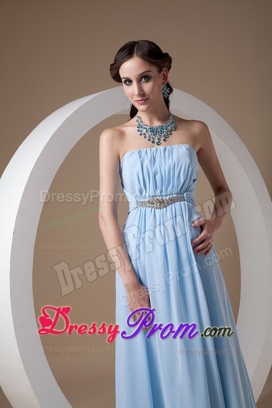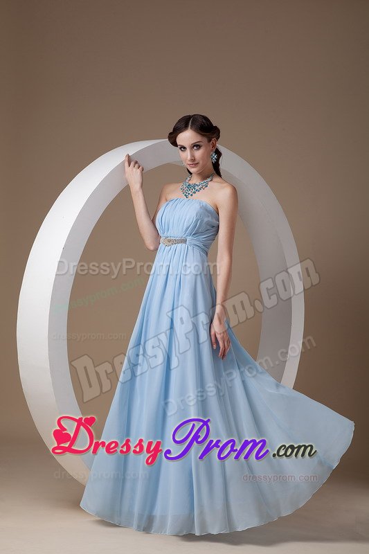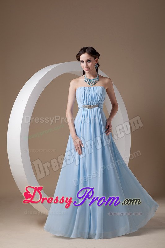 Sexy strapless design does not lack of stability and sex yet elegance, just like this one. The stunning bodice is adorned with embellished beadwork under the bust and exquisite ruchings. The empire skirt flows freely to the floor to create a beautiful brush train. A hidden zipper up in the back completes this fabulous design.
