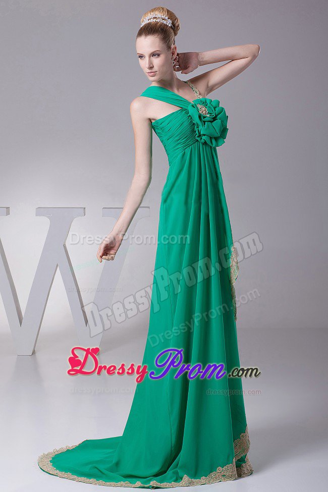 Look like a fairy in this gorgeous prom dress! The fitted straps bodice is gorgeous with nice ruchings,extra big hand made flower on the bodice add more interesting for this dress. Contrasting made straps make the dress more funny! Flowy skirt is perfectly set off in soft and wonderful chiffon with a gorgeous sweep train and lace-up tie back for great fit. Perfect for the girl willing to stand out from the crowd.