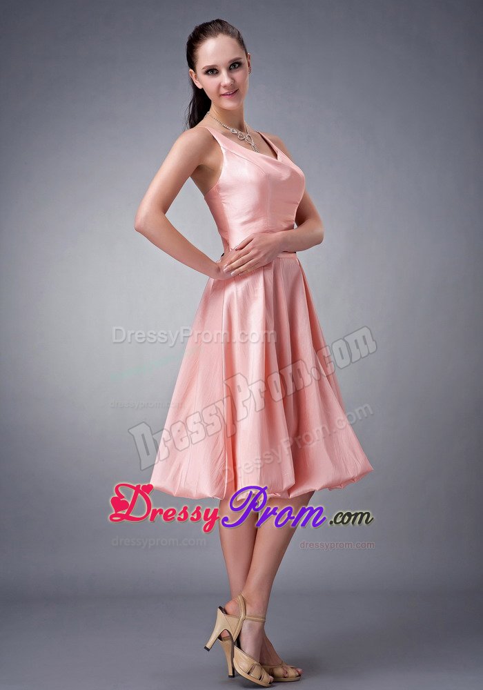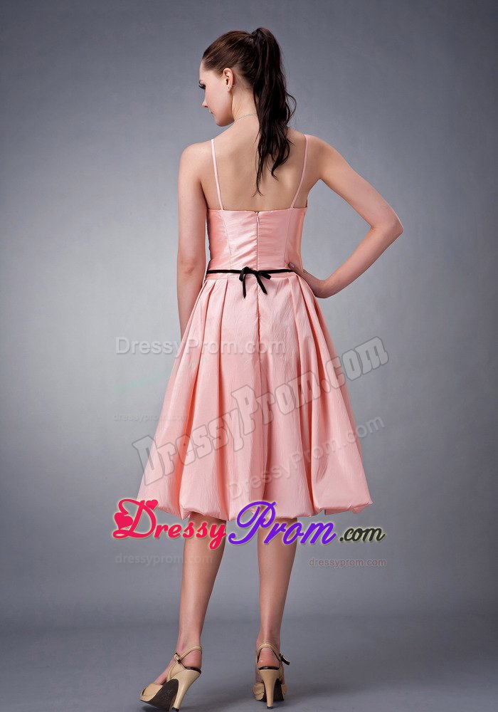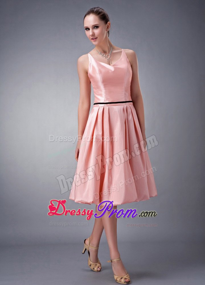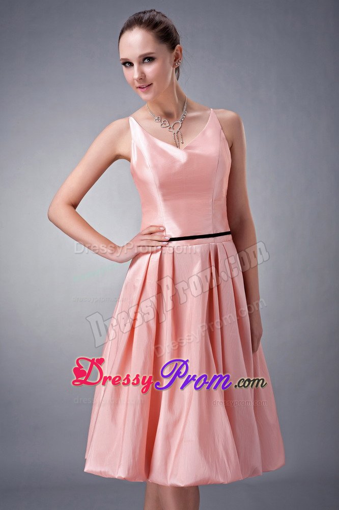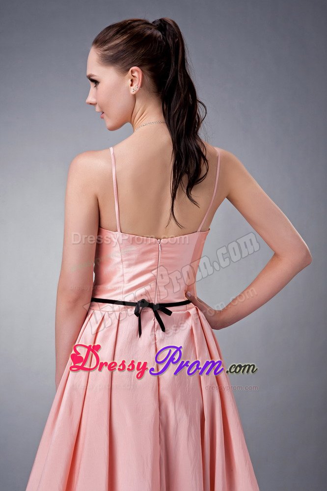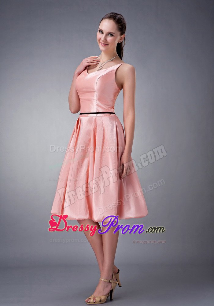 Exquisite and gorgeous pink dress. The sheathy bodice which flatters the slim line covered with comfortable satin features a v-neck. The sleeveless bodice features your two arms. Black band add the charm of the empire waist. The short skirt shows your slim legs.The zipper in the back of the dress secures it in place and makes for easy off and on.