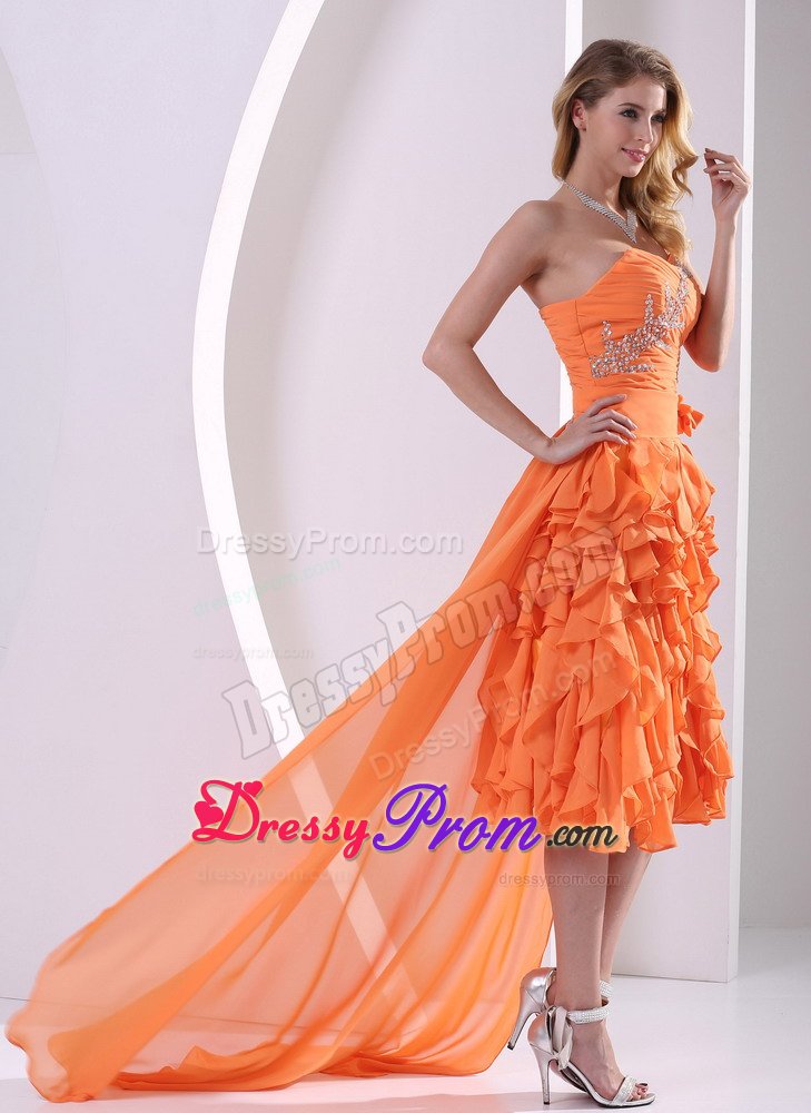 Strapless dresses are one of the hot styles on the market today.This one features a lovely strapless wrapped bodice with beading details and pleat throughout. The vertical airy feather over the midsection adorned with beadings to make the dress more shinning in the spotlight. The highlow skirt is straight, but fitted and is comprised of many ruffled pieces that are sewn asymmetrically throughout the skirt. Whenever you wear it, there is no doubt that you are the spotlight for the night in this beautiful dress! Believe me you will like it. It is worth buying.