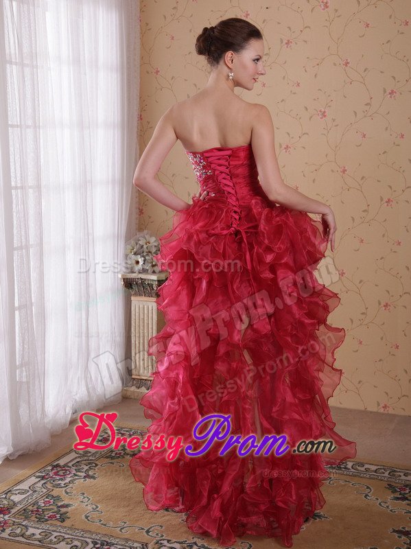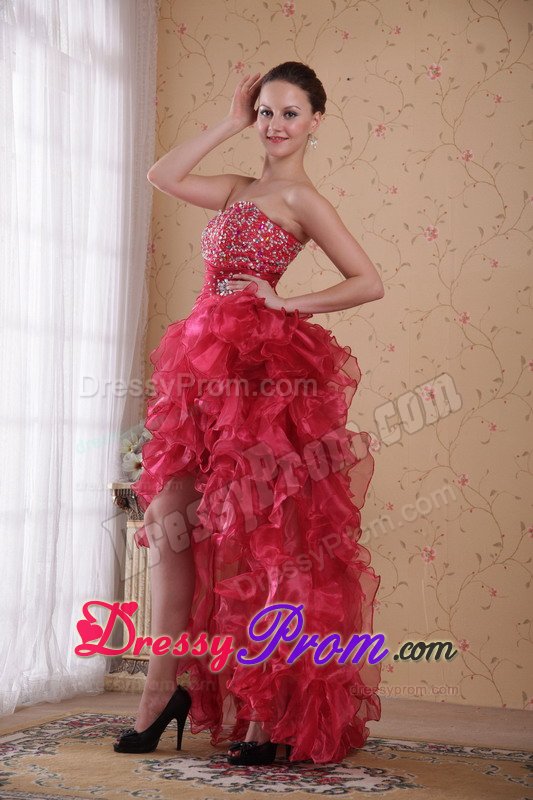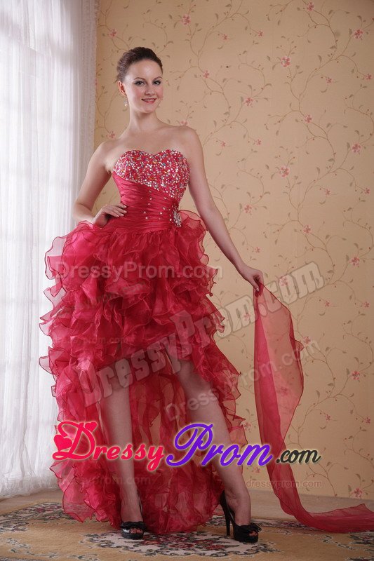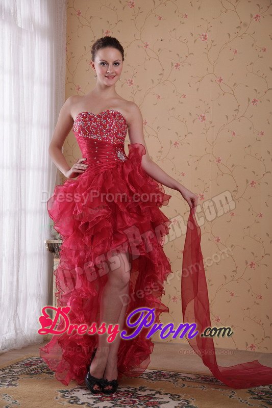 This affordable tulle skirt Homecoming Dress is just the ticket for a fun night.This lovely dress with strapless sweetheart nuckline and lots of flashy bling on the bust and waist.Dazzling jewels in a fashional design add the perfect touch of sparkle. The high low hemline on this prom dress let's you show off a seductive curve.Complete with lace up back.This design will have heads turning as soon as you arrive.