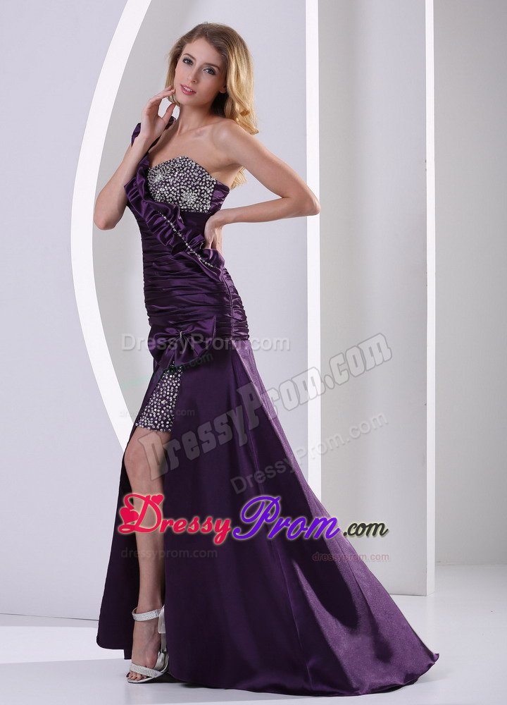 Go for glamour and a fabulous flattering fit with this dress. Show off your lovely shoulders in this dress with sweetheart neckline, ruched bodice, one shoulder strap. The elegant long pleated flowing skirt is a flattering fit for any figure type.This high slit skirt signified your attitude of elegance, which helps you to earn thousands of spotlight at the party. A zipper up completes the dress. Are you still hesitating? You will never regret if you choose this dress.