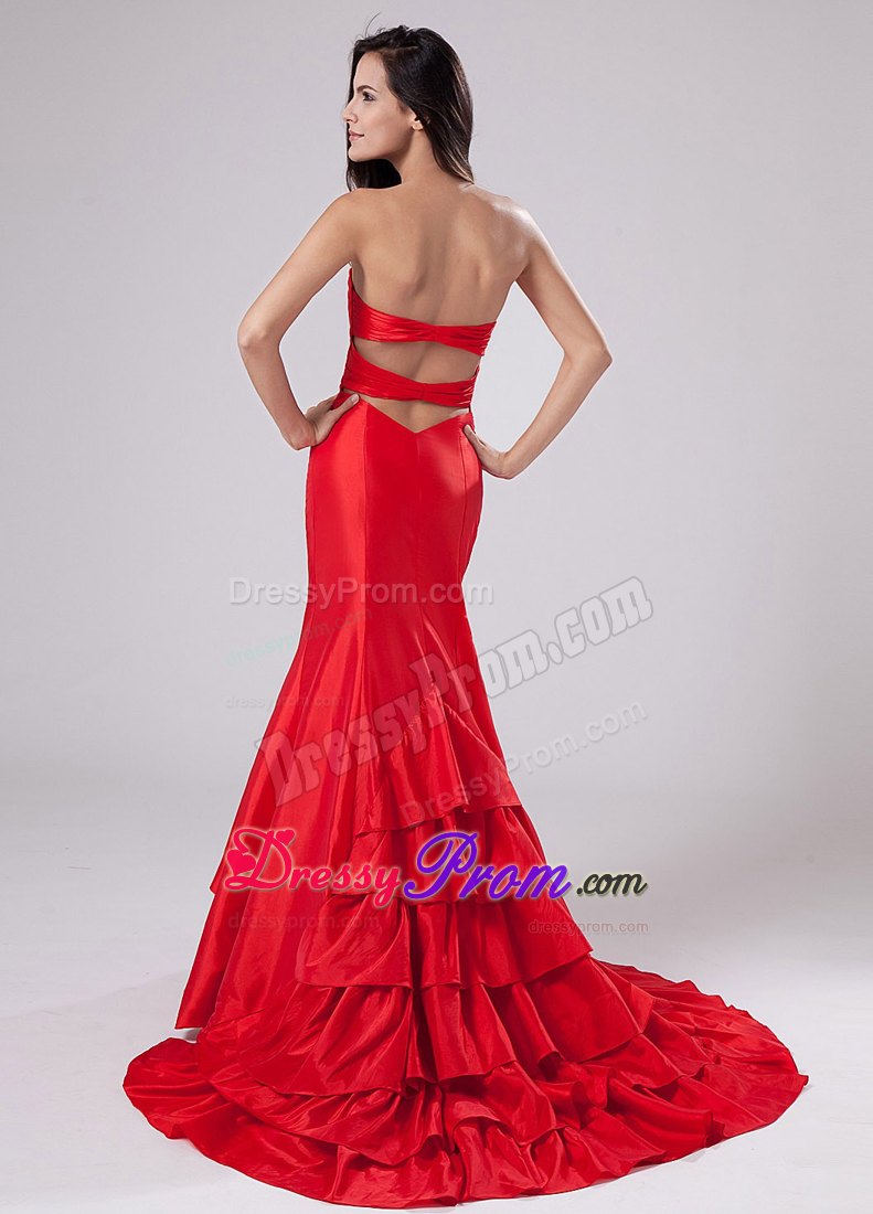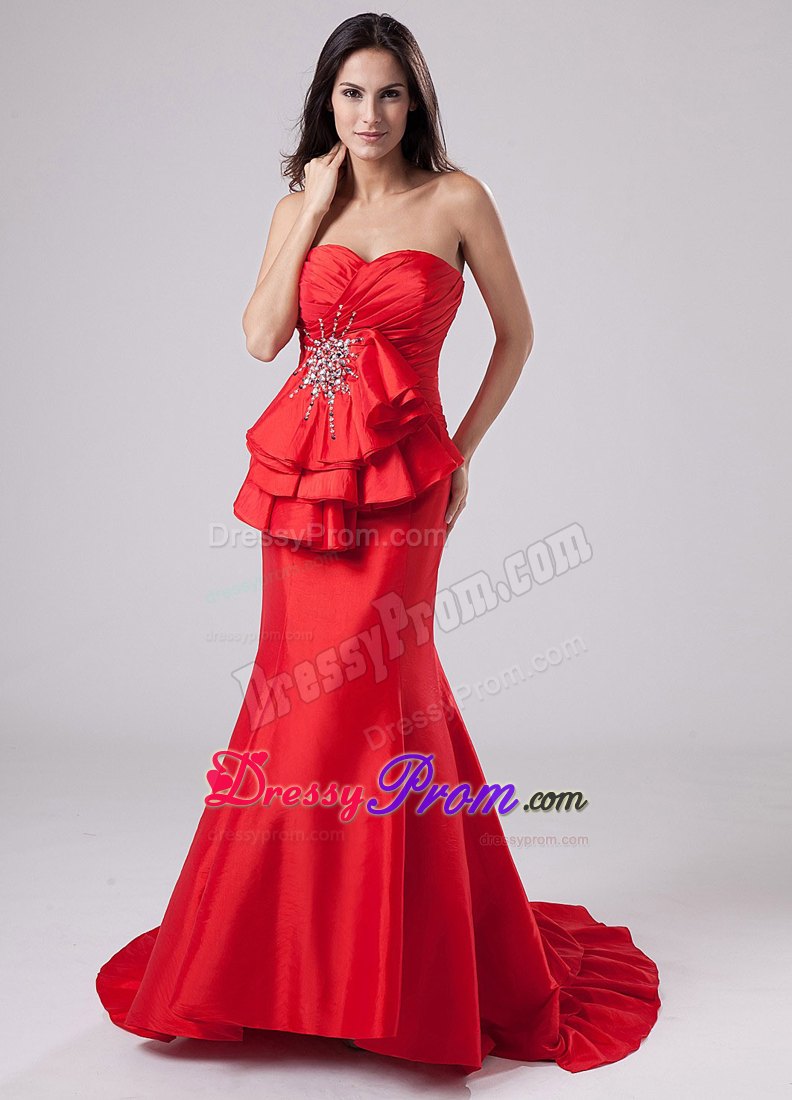 Get the look all your friends will envy as you arrive at your prom or formal in this stunning strapless red prom gown. This is an elegant evening gown with a strapless sweetheart neckline on the ruched bodice. Dazzling beadings on the empire waist crates a flattering trim fit. Float into your prom or black tie event in this long strapless dress and it will look as if you are walking on air.