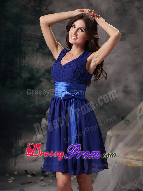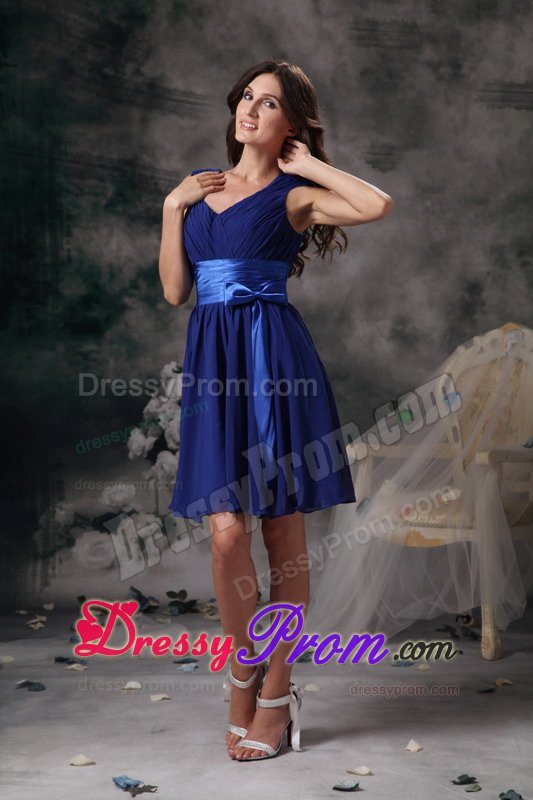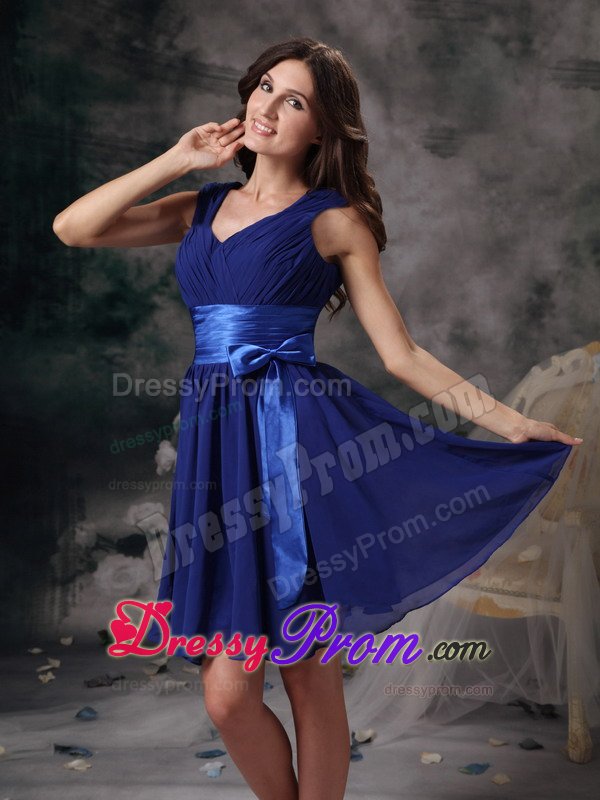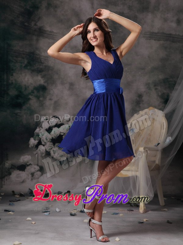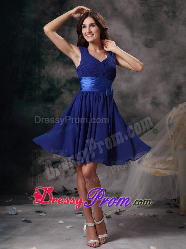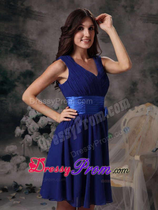 Looking for a fabulous dress for your 2013 homecoming or prom? This beautiful short V-neck dress has a demure knee length. A homecoming dress that features vertical shirring overlaying the V-neck empire bodice and a flared a-line knee length skirt. Available in many colors this V-neck Mini-length dress for homecoming will have all eyes on you.