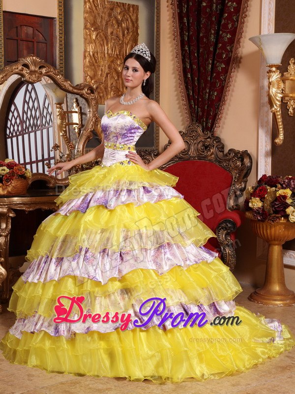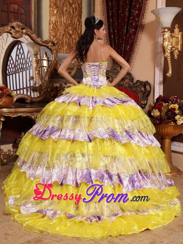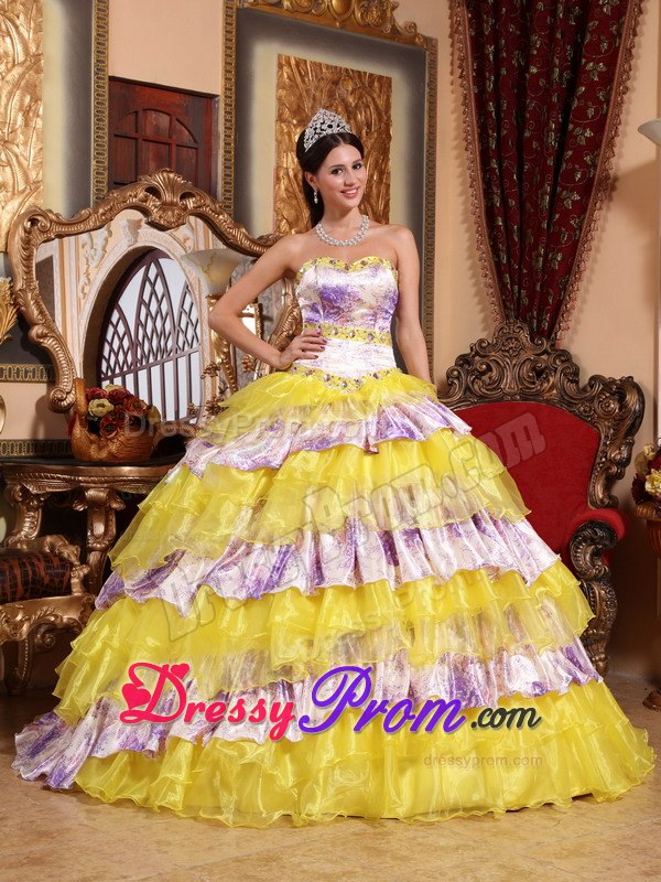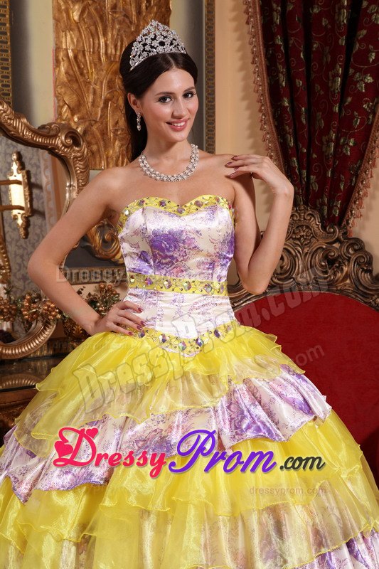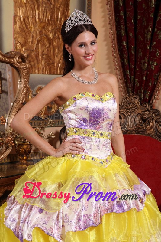 Star in your own fairytale at your 2012 quinceanera or formal in this quinceanera ball gown dress! The structured bodice with a modified sweetheart features dazzling beadings edged with the bust and waist, which accentuates your feminine qualities better than others. The beautiful skirt with corset closure is comprised of many tiers of winding ruffled circles that are sewn asymmetrically throughout the skirt. You are sure to be the best list !