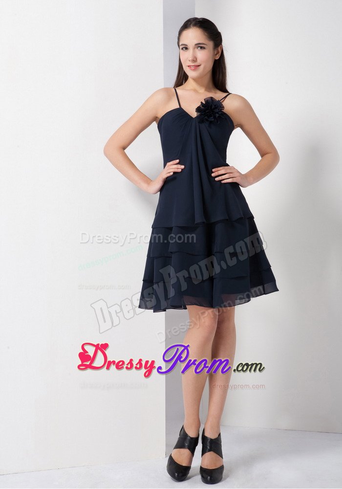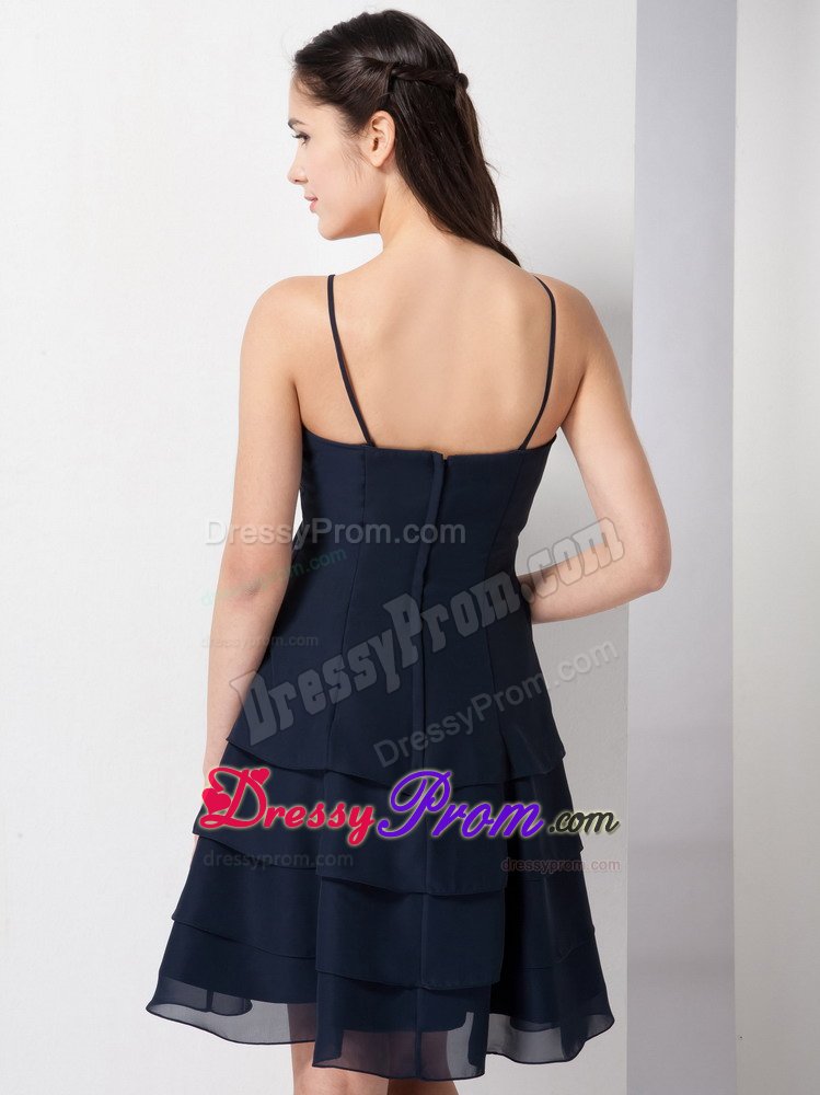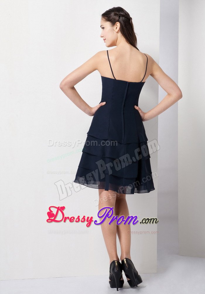 A lovely design combined with a flattering natural waist will make this chic dress an instant hit. A low cut sleeveless cocktail dress embellished with spaghetti straps and a sexy mini length layered hemline perfect for any occasion when you want to steal the spotlight. A hidden zipper up completes the look and the dress is available in any color you want.