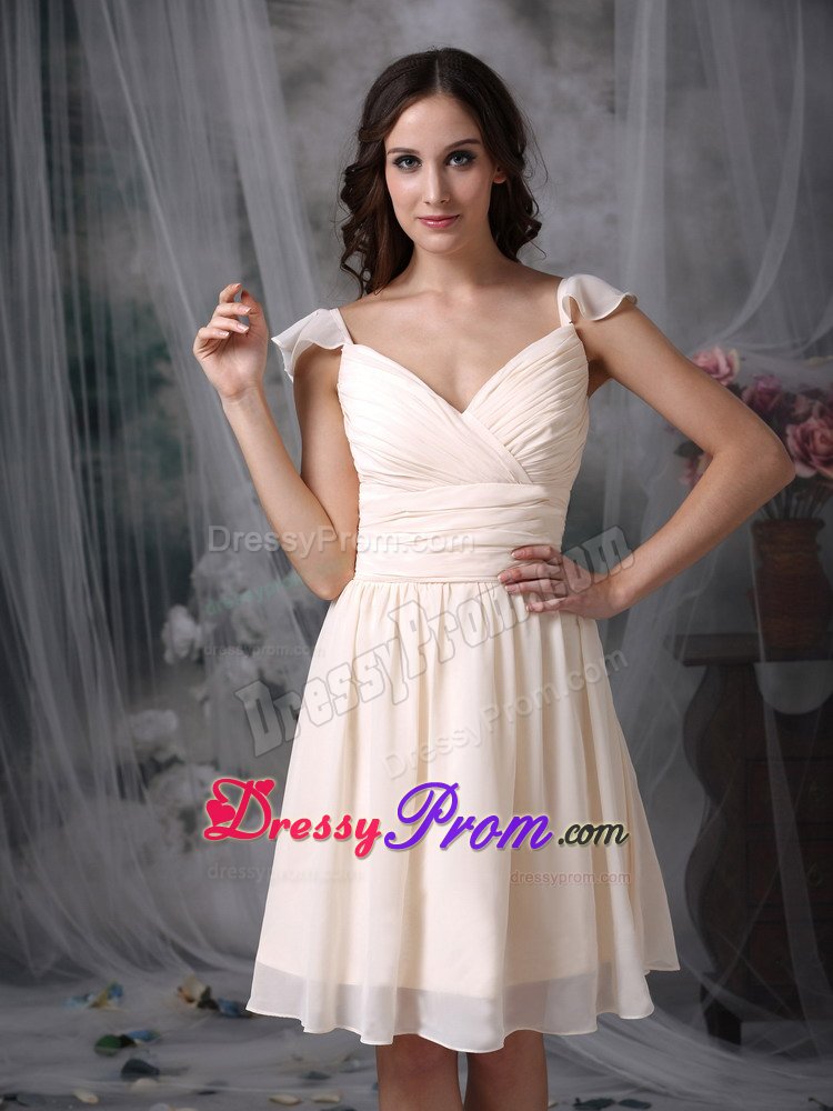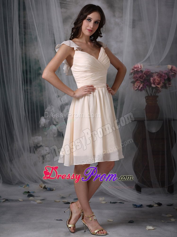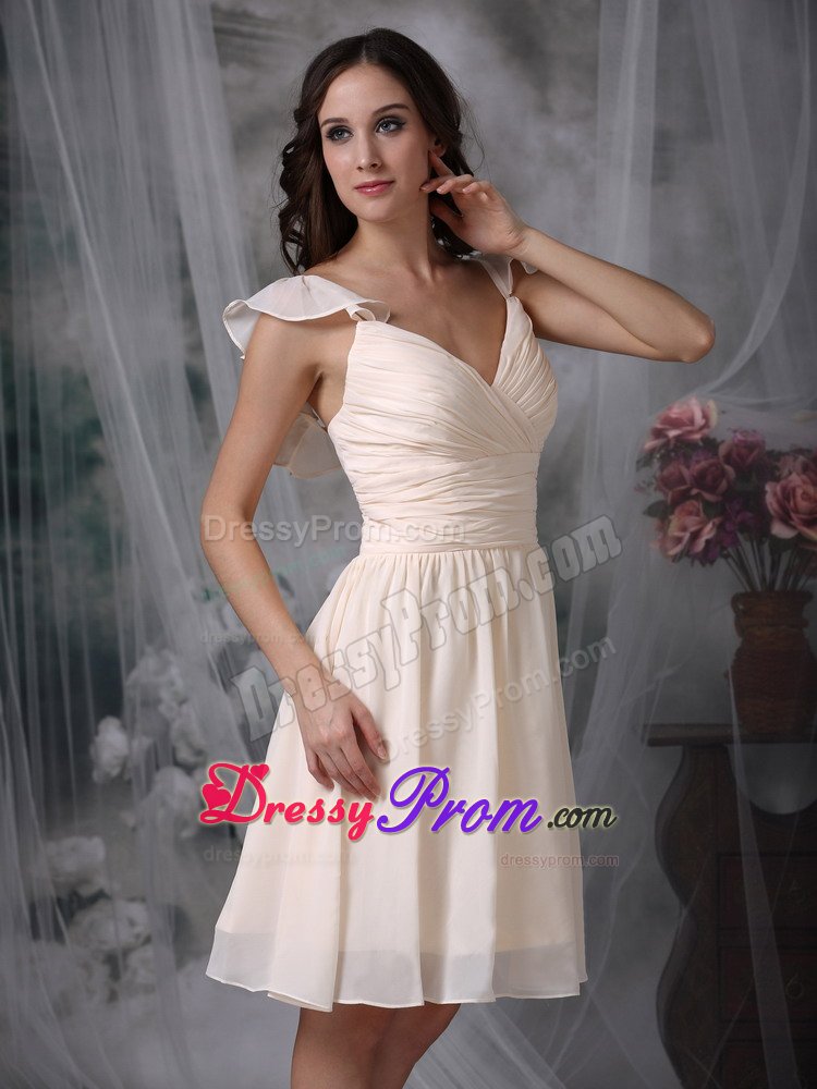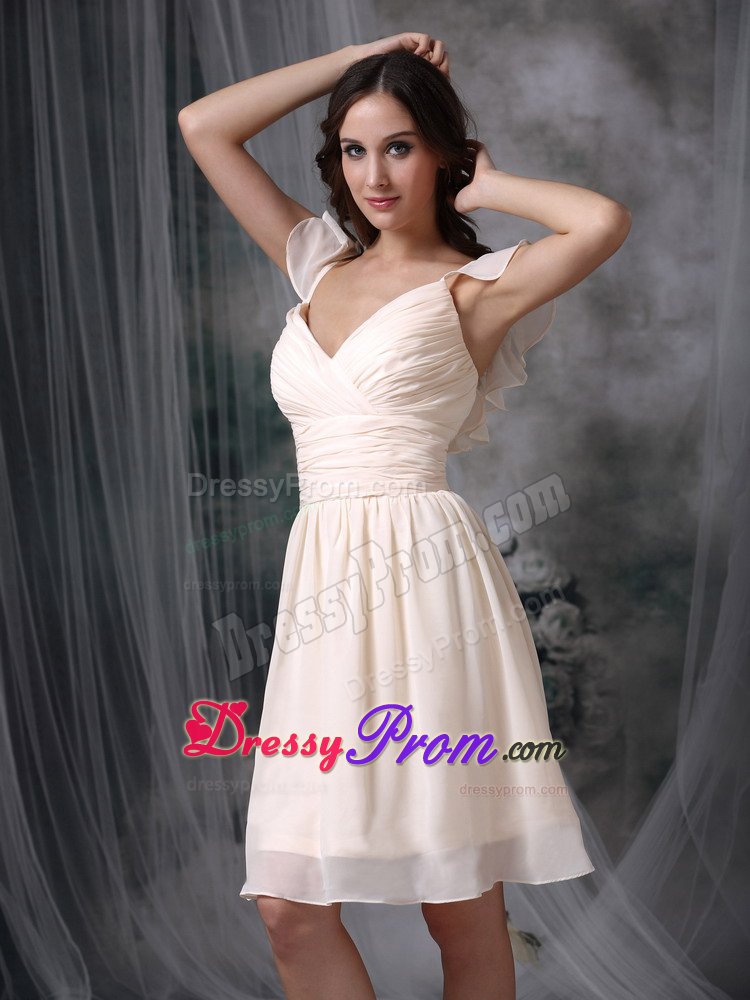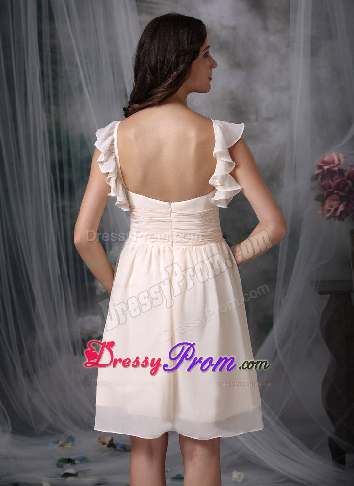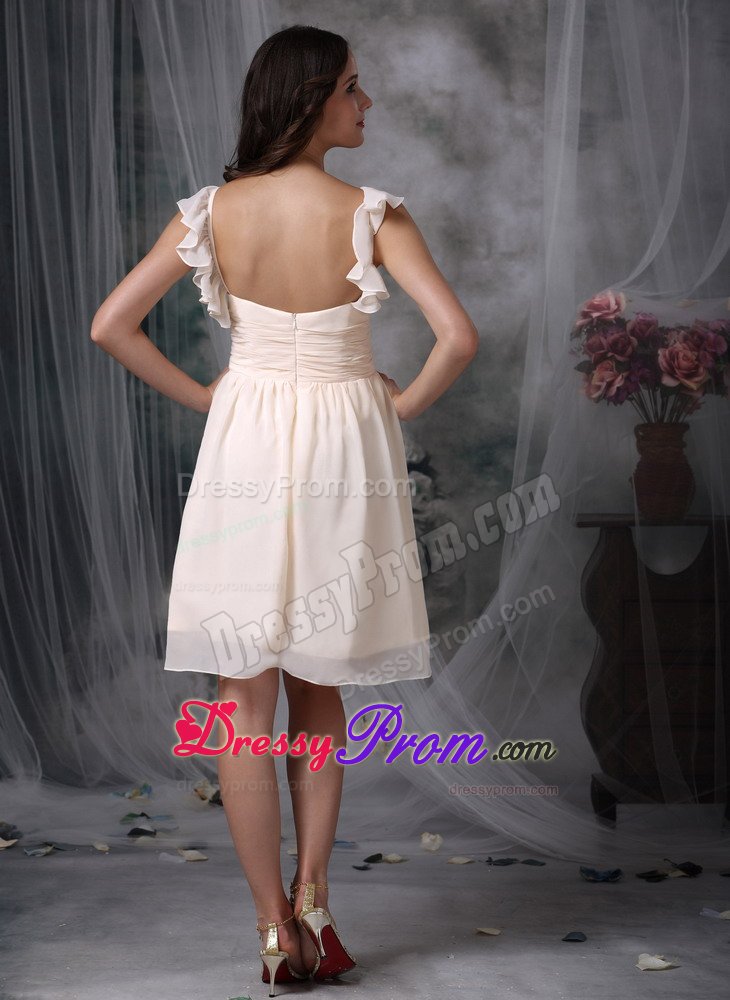 The sweetheart neckline with two ruffle straps is completely adorned with ruched details. The asymmetrically ruched bodice and the bare back make the dress more sexy. while the short skirt features pleats. You will be a focus on the party.