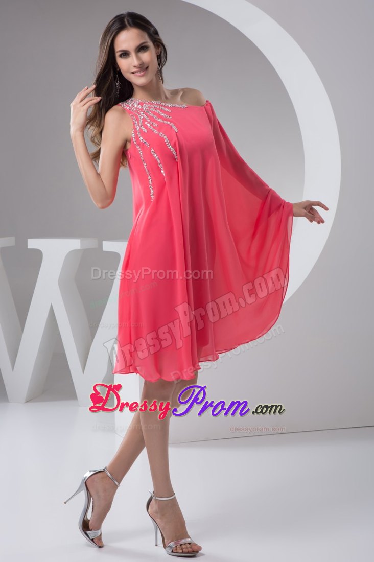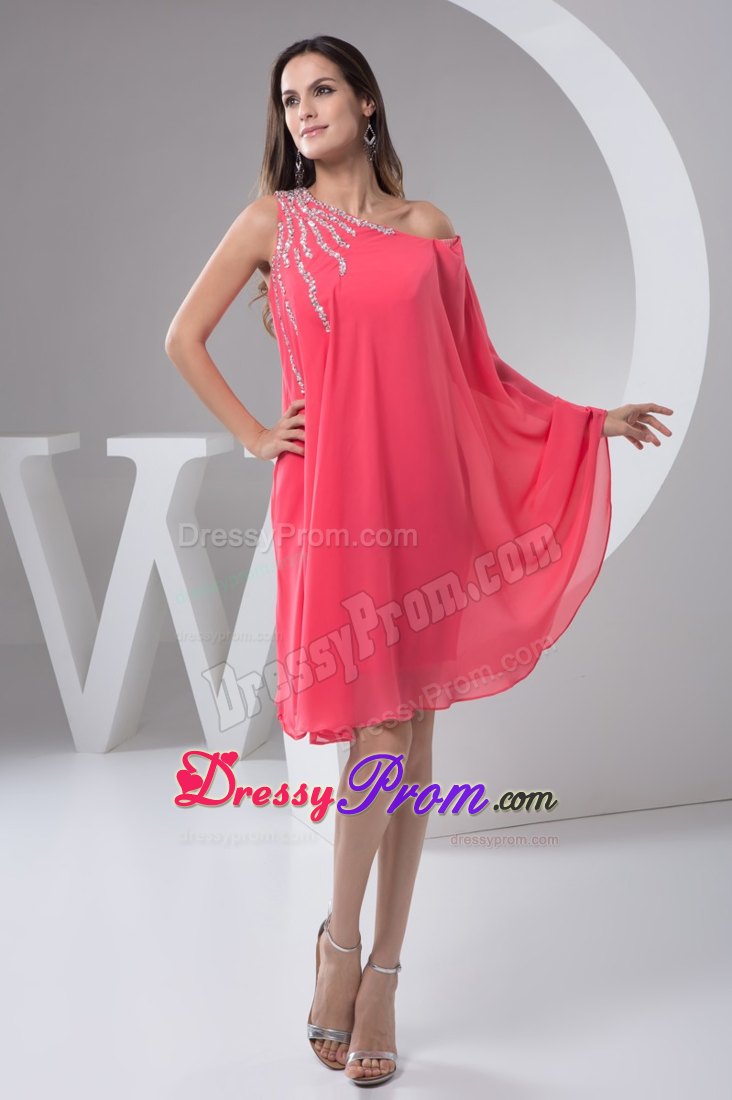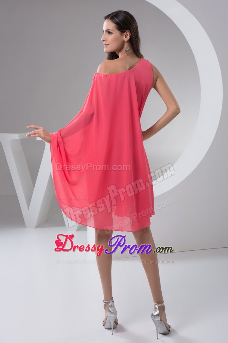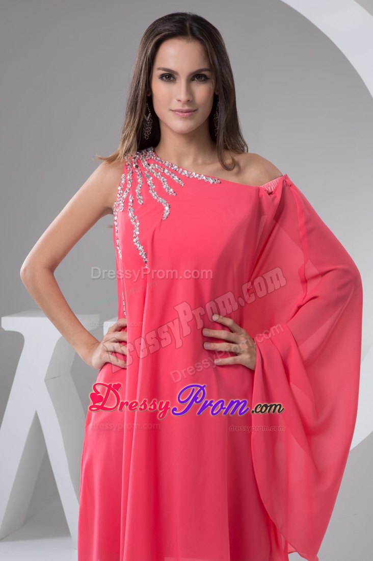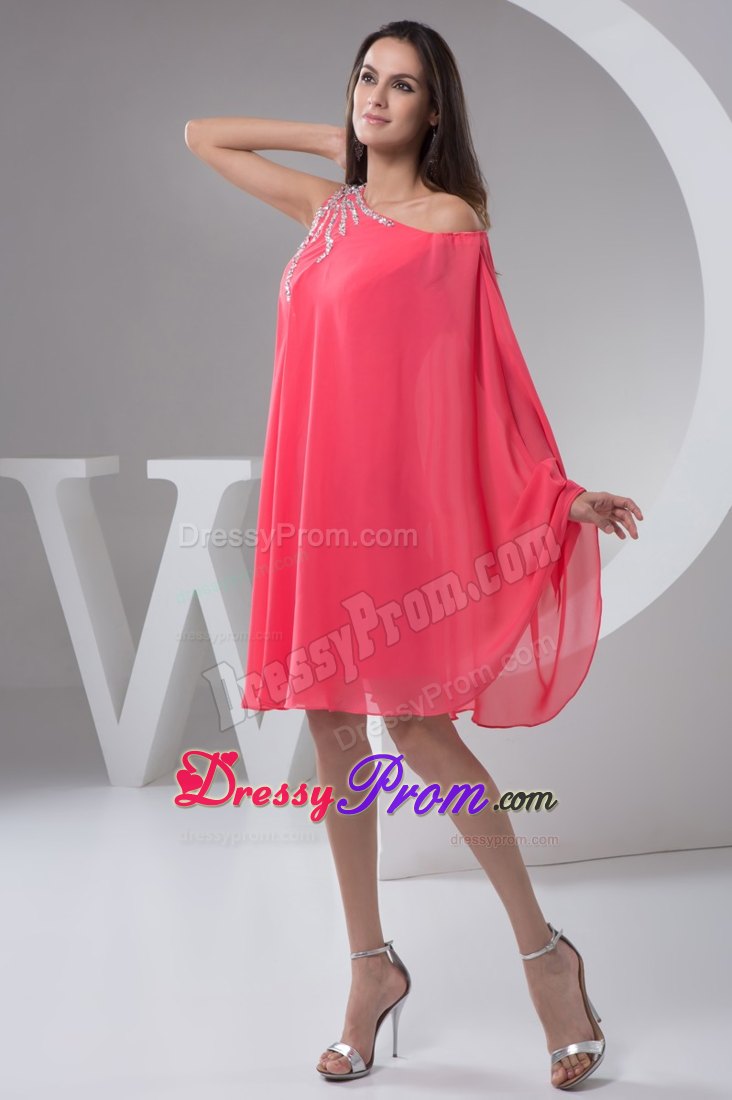 This one shoulder short prom gown features a bat-wing sleeve, beadings on the shoulder flare out add the highlight of this dress. The loose style is fit for any body type to cover your extra fat. It is available in black and white or other colors.